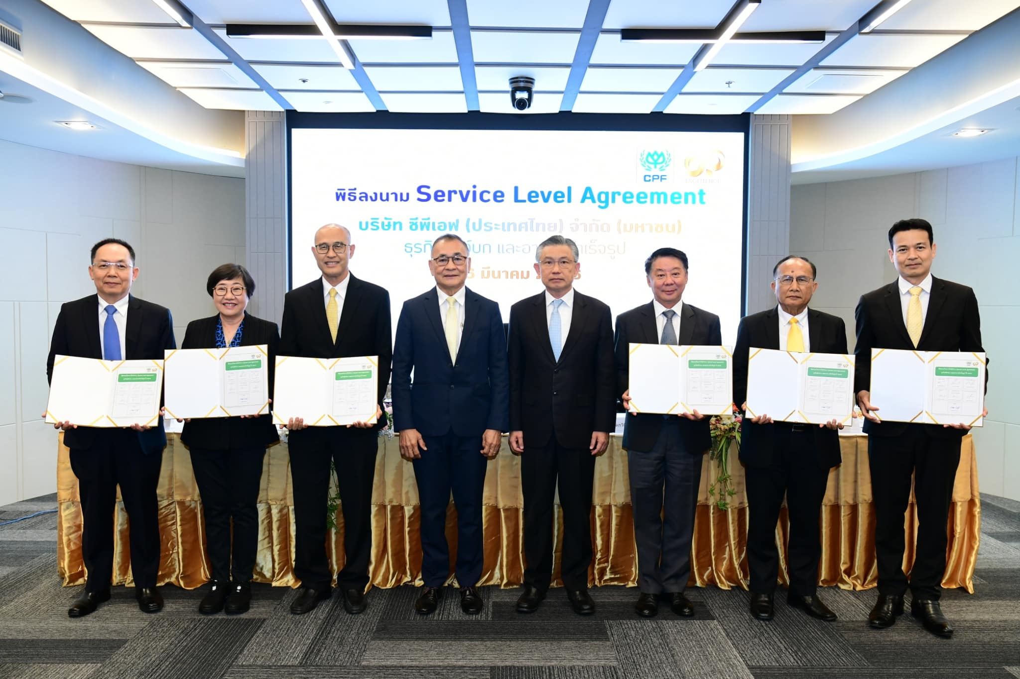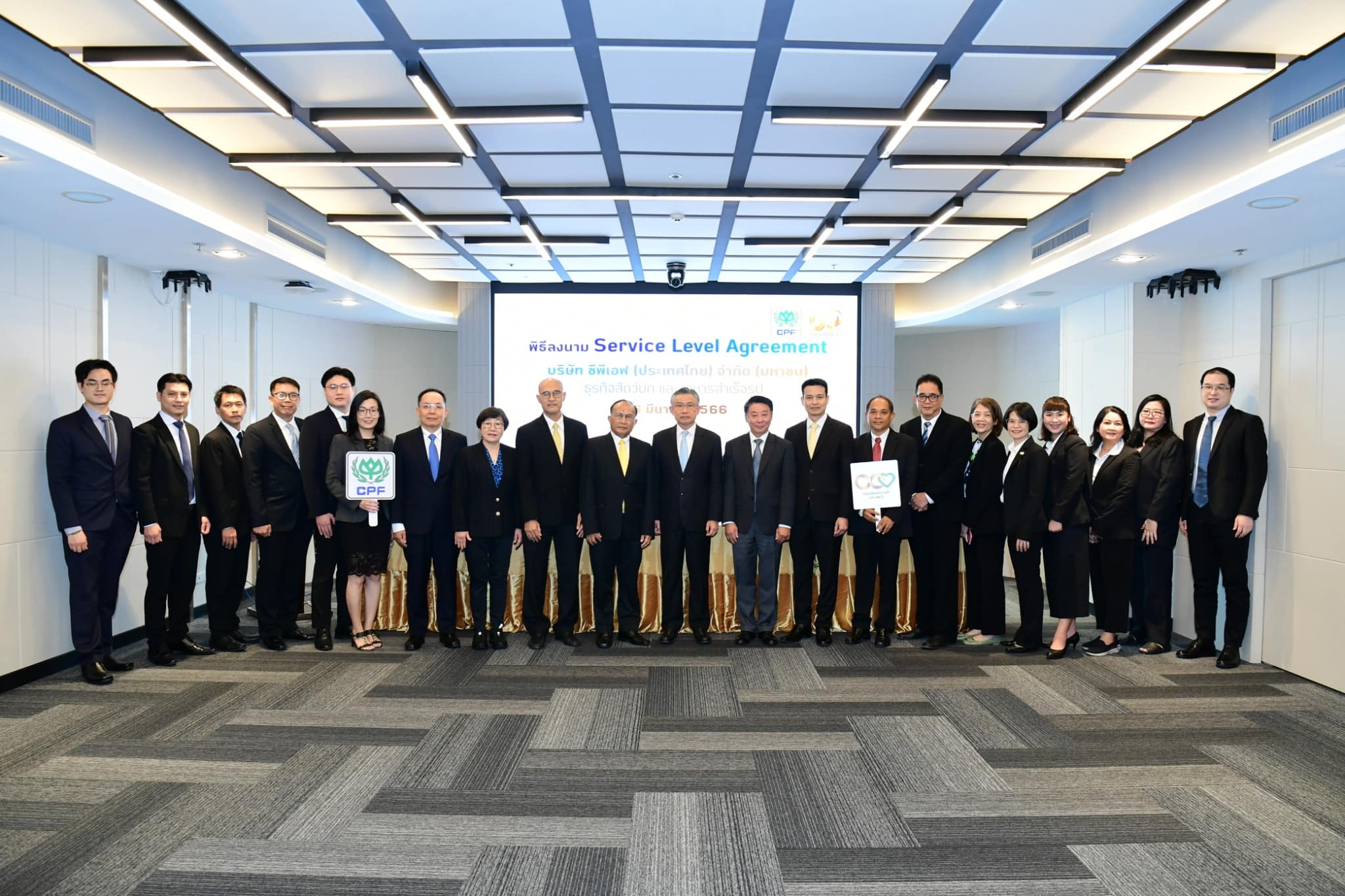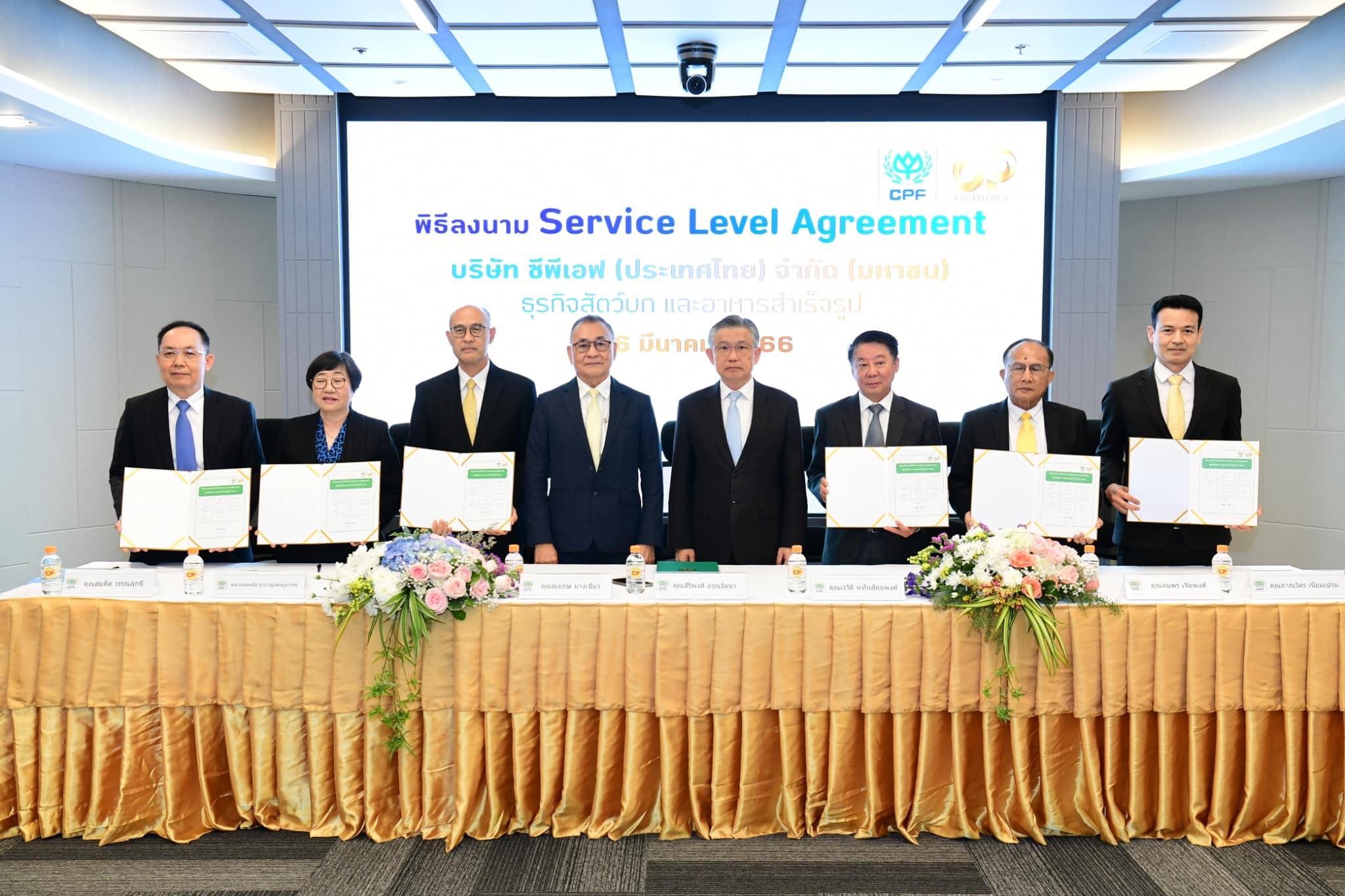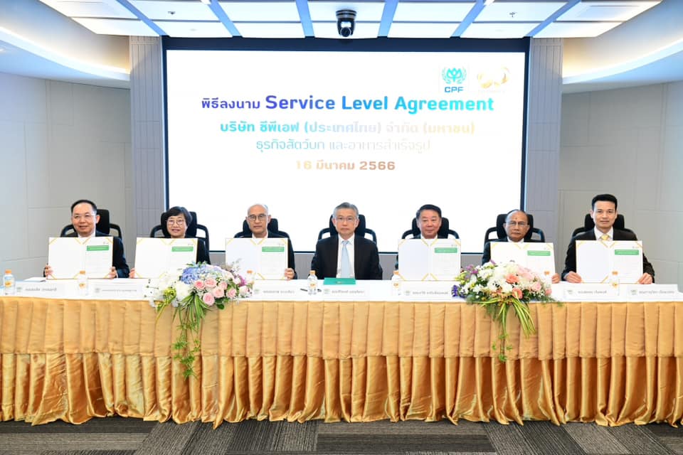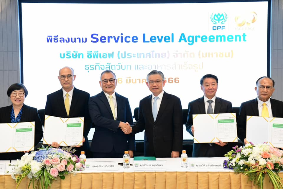 เครือซีพี โดยหน่วยงานระบบบริหารซีพีสู่ความเป็นเลิศ (CP Excellence) จัดพิธีลงนามข้อตกลง Service Level Agreement (SLA) ร่วมกับ CPF ซึ่งเป็นข้อตกลงสัญญาการให้บริการระหว่างผู้ให้บริการและผู้รับบริการตามระดับที่ทั้งสองฝ่ายตกลงกัน นำร่องธุรกิจสัตว์บกและธุรกิจอาหารสำเร็จรูป 6 สายงาน บูรณาการการทำงานอย่างมีประสิทธิภาพ เพื่อเป็นแนวทางให้แต่ละกลุ่มธุรกิจตลอดห่วงโซ่คุณค่า (Value Chain) บรรลุเป้าหมายร่วมกัน โดยเฉพาะการส่งมอบสินค้าที่มีคุณภาพสู่คู่ค้าธุรกิจและผู้บริโภค โดยมี คุณทินกร เรือนทิพย์ ผู้ช่วยบริหาร สำนักรองประธานอาวุโส เครือ CP และคุณสิริพงศ์ อรุณรัตนา ประธานผู้บริหารฝ่ายปฏิบัติการ ธุรกิจสัตว์บก CPF ลงนาม