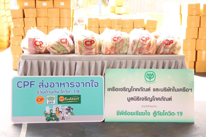 ความช่วยเหลือดังกล่าว เป็นไปตามนโยบายของเครือ CP ที่ท่านประธานอาวุโสธนินท์ เจียรวนนท์ ต้องการให้ทุกบริษัทในเครือร่วมช่วยเหลือสังคมในสถานการณ์โควิด-19 และผู้ยากไร้ในพื้นที่ชุมชนแออัด ซึ่งเป็นกลุ่มเปราะบางที่ต้องเผชิญความเดือดร้อนอย่างมากกับโรคระบาดนี้ CPF จึงมอบความช่วยเหลือผ่านโครงการ “CPF ส่งอาหารจากใจ ร่วมต้านภัยโควิด-19” ด้วยการส่งมอบอาหารปลอดภัย 15,000 ชุด ประกอบด้วย อาหารสำเร็จรูปหลายประเภท อาทิ กับข้าวหลากหลายเมนู อาทิ เกี๊ยวกุ้ง, ชิคเก้นริบ, อกเป็ดรมควัน, น่องติดสะโพก, กับข้าว, ไส้กรอก, ลูกชิ้น กว่า 41,000 แพ็ค และนมเปรี้ยวซีพี-เมจิ 60,000 ขวด ขณะที่ ซีพี ออลล์ มอบน้ำดื่ม 15,000 ขวด และทรูมอบซิมกักตัวไม่กลัวเหงา