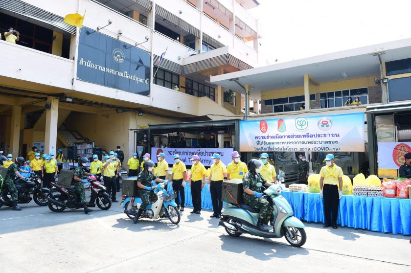 พล.ท.วิรัตน์ นาคจู ผู้บัญชาการหน่วยบัญชาการป้องกันภัยทางอากาศ กองทัพบก หรือ นปอ. พร้อมด้วย คุณสุพจน์ รอดเรือง ณ หนองคาย รองผู้ว่าราชการจังหวัดปทุมธานี และ คุณอดิศร์ กฤษณวงศ์ รองกรรมการผู้จัดการอาวุโส CPF ผู้แทนเครือเจริญโภคภัณฑ์และมูลนิธิเจริญโภคภัณฑ์ ร่วมมอบสิ่งของอุปโภคบริโภคจากโครงการ CPF ส่งอาหารจากใจ ร่วมต้านภัยโควิด-19 ในกิจกรรมจิตอาสา “เราทำความดี เพื่อชาติ ศาสน์ กษัตริย์” เพื่อบรรเทาความเดือดร้อนประชาชนจากสถานการณ์โควิด-19 ในพื้นที่ อ.เมืองปทุมธานี จ.ปทุมธานี จำนวน 7 ชุมชน รวม 500 หลังคาเรือน อาทิ ชุมชนเทพพัฒนา และชุมชนโสภารา ณ สำนักงานเทศบาลเมืองปทุมธานี