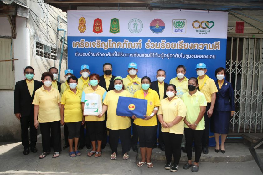ทั้งนี้ CPF ร่วมกับกองทัพบก สนับสนุนการสร้างบ้านให้กลุ่มเปราะบาง ในพื้นที่ชุมชนคลองเตยล็อค 4-5-6 จำนวนทั้งสิ้น 87 หลัง รวมมูลค่า 13,998,000 บาท แบ่งเป็น ระยะที่ 1 จำนวน 40 หลัง คิดเป็นมูลค่า 5,200,000 บาท และระยะที่ 2 มูลค่า 8,798,000 บาท จำนวน 47 หลัง โดยส่งมอบ 7 ครั้ง ได้แก่ ครั้งที่ 1 เดือนมกราคม 2563 จำนวน 30 หลัง ครั้งที่ 2 เดือนเมษายน 2563 จำนวน 10 หลัง ครั้งที่ 3 เมษายน 2564 จำนวน 9 หลัง ครั้งที่ 4 ธันวาคม 2564 จำนวน 15 หลัง ครั้งที่ 5 เมษายน 2565 จำนวน 10 หลัง ครั้งที่ 6 มิถุนายน 2565 จำนวน 6 หลัง และครั้งที่ 7 กรกฎาคม 2565 จำนวน 7 หลัง รวมทั้งสิ้น 87 หลัง เพื่อเสริมสร้างความมั่นคงแก่สมาชิกในครอบครัว ซึ่งเป็นรากฐานสำคัญนำไปสู่การพัฒนาประเทศอย่างยั่งยืนต่อไป./