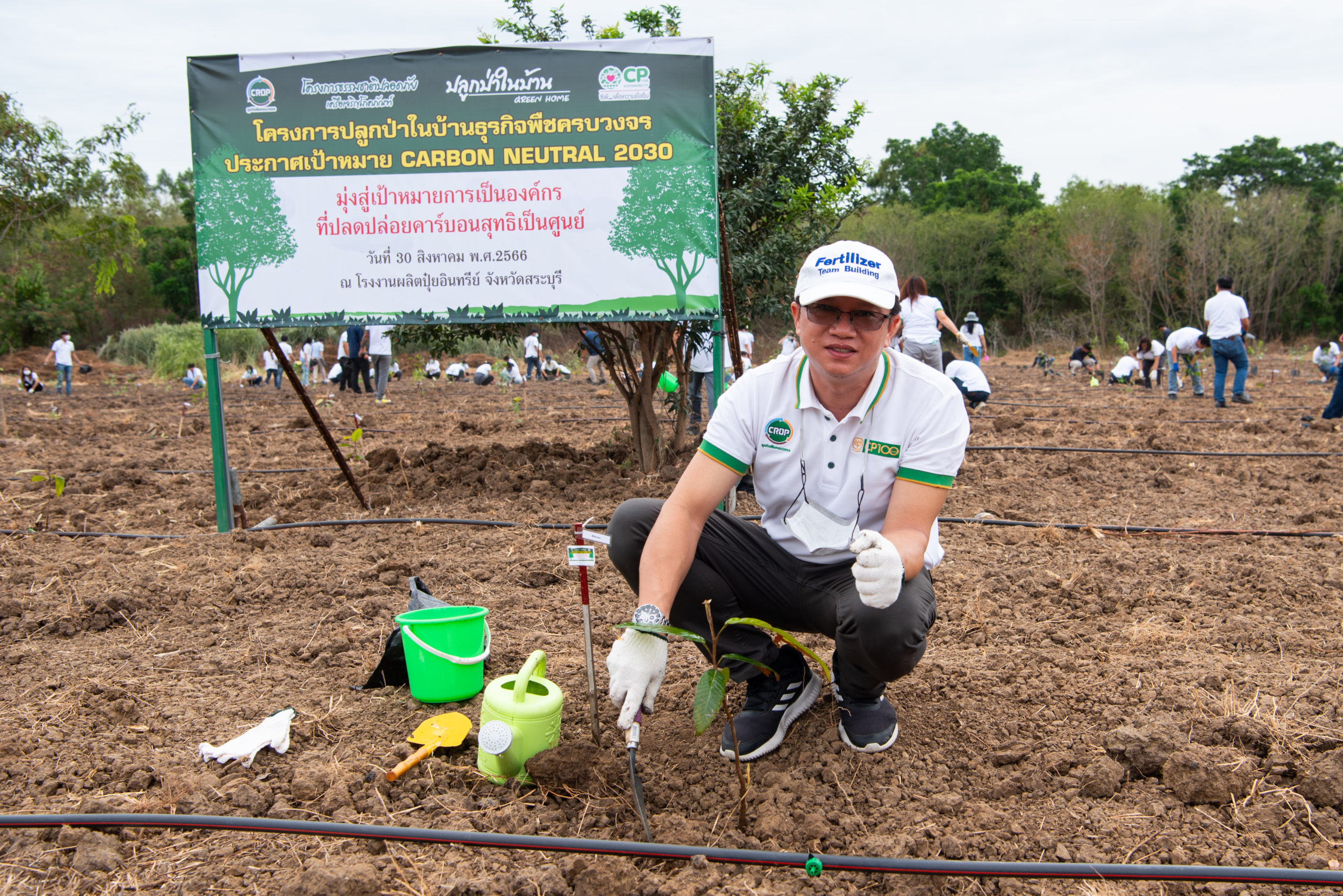 เมื่อเร็ว ๆ นี้ คุณสุริยา สุริยกานนท์ รองกรรมการผู้จัดการอาวุโส กิจการโรงงานผสมและบรรจุปุ๋ย พร้อมด้วยผู้บริหารและพนักงานจิตอาสากว่า 130 คน ร่วมกันปลูกไม้ยืนต้นตามโครงการปลูกป่าในบ้าน ธุรกิจพืชครบวงจร ข้าว ขนส่งและบริการ จำนวน 500 ต้น บนพื้นที่ 4 ไร่ บริเวณโซน 3 ของโรงงานผลิตปุ๋ยอินทรีย์ เพื่อขับเคลื่อนสู่เป้าหมายการเป็นองค์กรที่เป็นกลางทางคาร์บอน (Carbon Neutral) ภายในปี 2030 ตามนโยบายของเครือเจริญโภคภัณฑ์