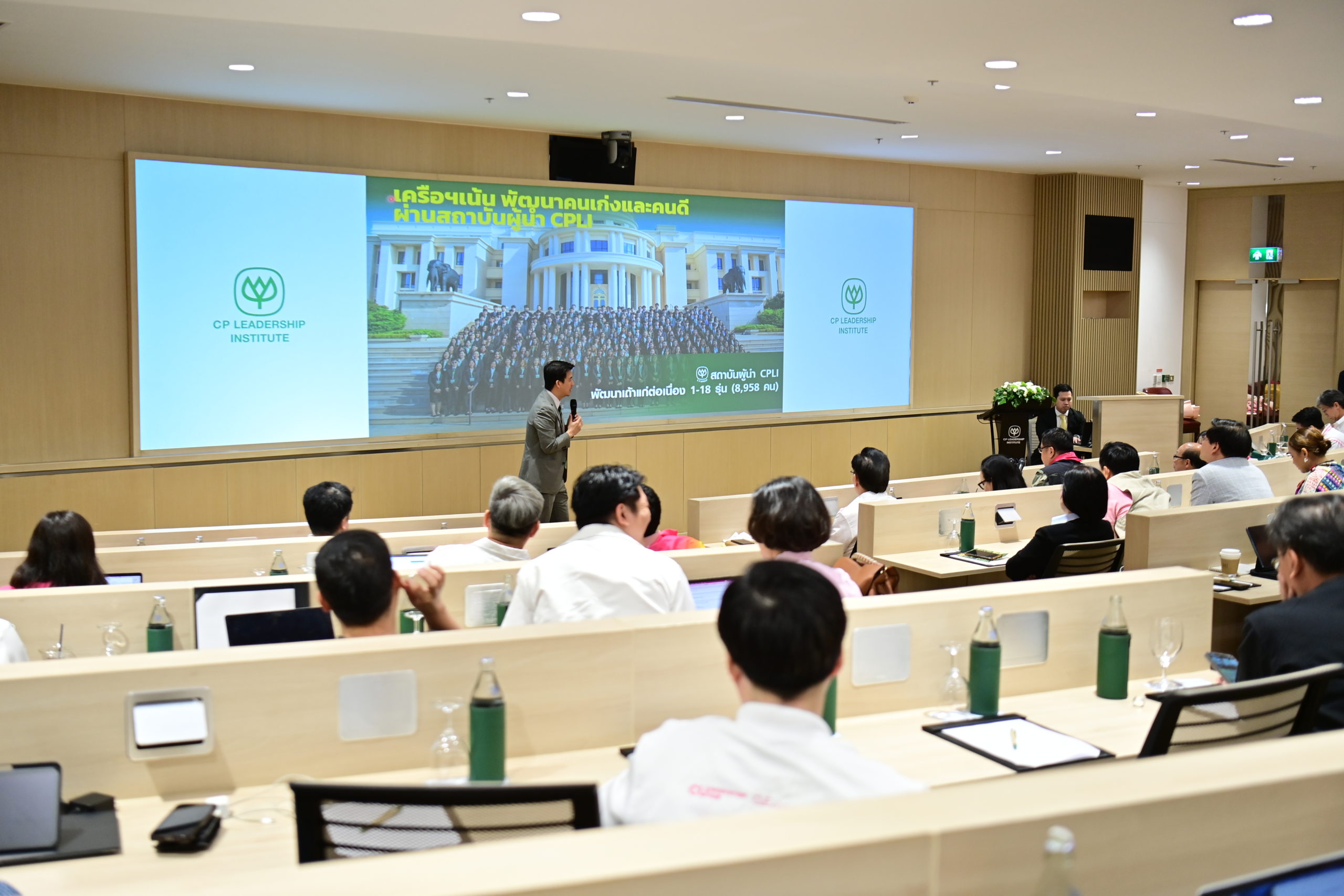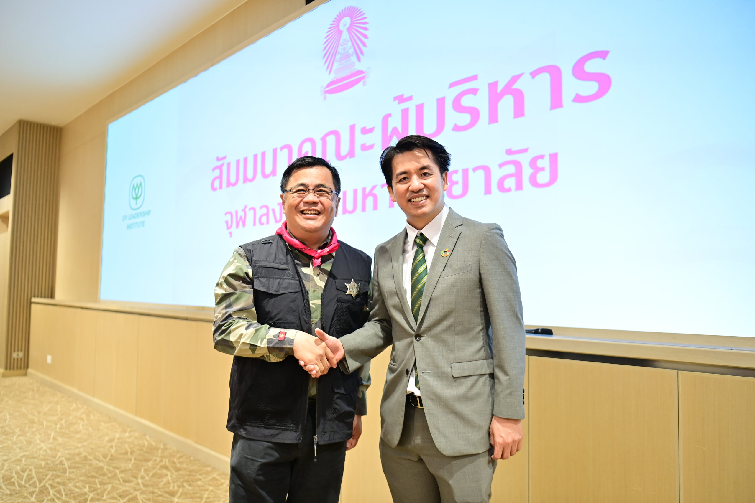 ในการนี้ ดร.ธีระพล ถนอมศักดิ์ยุทธ ประธานคณะผู้บริหารด้านความยั่งยืนองค์กรและการพัฒนากลยุทธ์ เครือเจริญโภคภัณฑ์ ซึ่งได้รับเชิญบรรยายพิเศษในหัวข้อ “Growth Strategies with Educational Connections: การเติบโตร่วมกันอย่างยั่งยืน” เป็นผู้แทนเครือซีพีกล่าวต้อนรับคณาจารย์จากจุฬาลงกรณ์มหาวิทยาลัยที่ให้เกียรติจัดการประชุมประจำปีที่ประชุมคณบดี ณสถาบันผู้นำ เครือเจริญโภคภัณฑ์ ซึ่งสถาบันผู้นำนี้ก่อตั้งขึ้นตามวิสัยทัศน์ของท่านประธานอาวุโส ธนินท์ เจียรวนนท์ เพื่อใช้เป็นศูนย์กลางการพัฒนาผู้นำทั้งภายในและภายนอกองค์กร โดยแนวทางพัฒนาผู้นำของเครือฯ ผ่านโครงการ 4 ระดับ ได้แก่ 1) เถ้าแก่น้อย (FLP), 2) เถ้าแก่เล็ก (PLP), 3) เถ้าแก่กลาง (LDP) และ 4) เถ้าแก่ใหญ่ (SLP) ซึ่งดำเนินการภายใต้แนวทาง Action-Based Learning จนถึงปัจจุบันได้พัฒนาผู้นำในเครือฯมาแล้ว 18 รุ่น มีผู้ผ่านการอบรมผู้นำเกือบ 9,000 คน