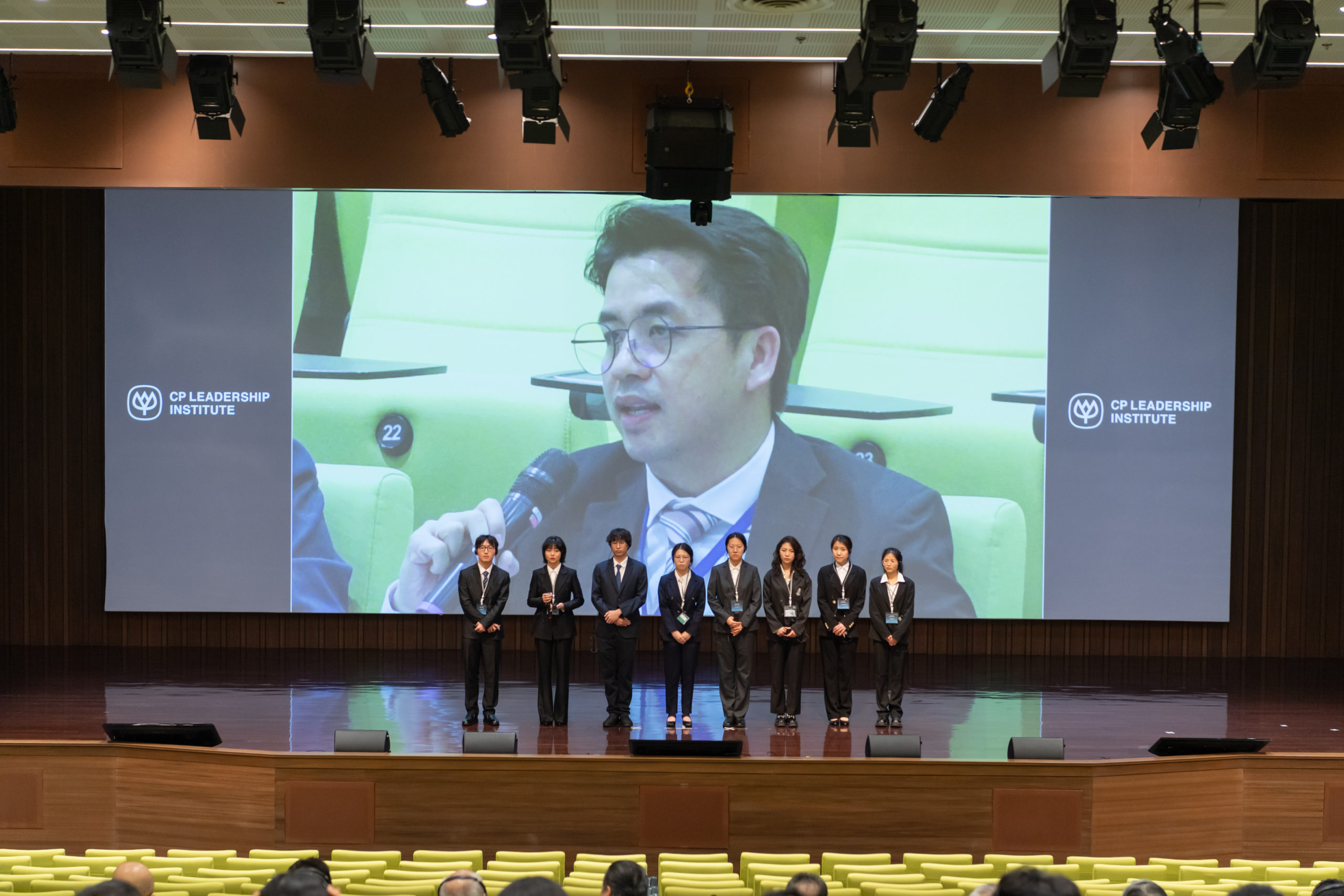ท่านประธานอาวุโส กล่าวชื่นชมความตั้งใจของนักศึกษามหาวิทยาลัยทั้ง 4 ตัวแทนจากประเทศไทยและจีน “สังคมปัจจุบันเปลี่ยนเป็นสังคมเทคโนโลยีขั้นสูงอย่างรวดเร็ว เรียกได้ว่าหน้ามือเป็นหลังมือ หากเราตามไม่ทัน ประเทศ เศรษฐกิจ และประชาชนจะมีปัญหา การแข่งขัน CP CUP ในวันนี้จึงตอกย้ำการสนับสนุนให้คนรุ่นใหม่ เข้ามีส่วนร่วมแก้ไขปัญหาร่วมกับสังคม ผ่านมุมมองทางธุรกิจ ในการเรียนรู้ เผชิญปัญหา และแก้ไขปัญหาจริง (Action-Based Learning) สิ่งนี้ทำให้เกิดปัญญา ซึ่งเป็นสิ่งจำเป็นควบคู่กับใบปริญญา” พร้อมกันนี้ท่านประธานอาวุโสยังได้กล่าวแสดงความยินดีกับทั้ง 4 ทีม หากวันนี้ทีมใดไม่ได้เป็นที่ 1 ก็ขอให้รู้ว่ายังมีโอกาสแสดงฝีมือต่อไป ถ้ามีความพยายามขยันหมั่นเพียร และเชื่อมั่นว่าหากมีโอกาสทำของจริงและแลกเปลี่ยนกัน ตัวแทนทุกทีมจะเจริญรุ่งเรื่องแน่นอน