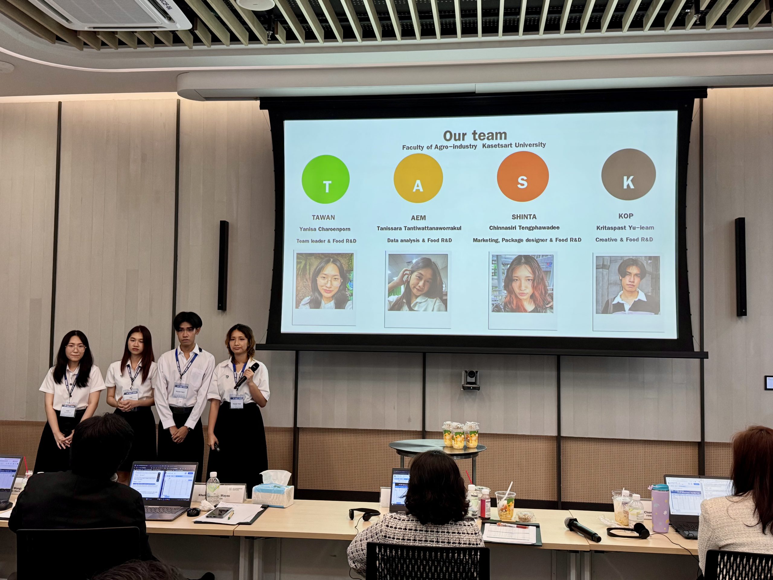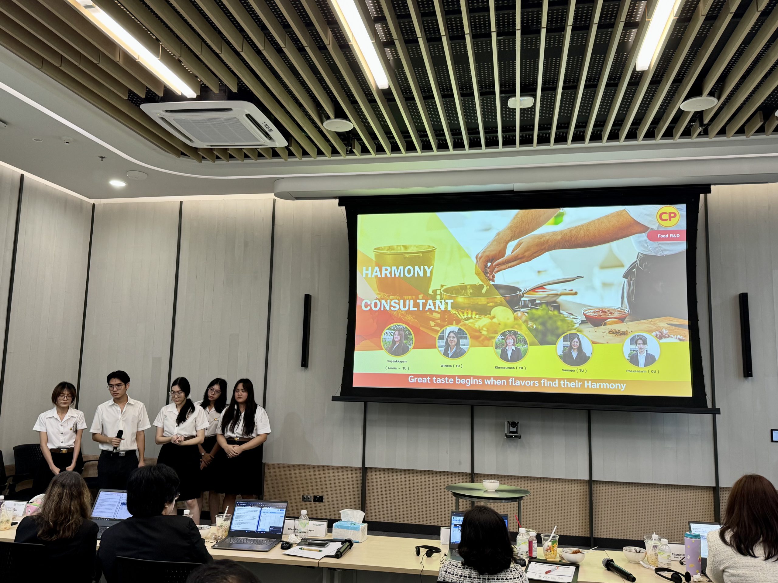 นักศึกษาทุกทีมต่างนำเสนอไอเดียสร้างสรรค์และนวัตกรรมด้านอาหารที่สร้างมูลค่าทางธุรกิจได้อย่างน่าประทับใจ ท่ามกลางบรรยากาศเต็มไปด้วยความกระตือรือร้นและการแลกเปลี่ยนมุมมองเชิงสร้างสรรค์ คณะกรรมการได้ซักถามรายละเอียดเชิงลึกและให้คำแนะนำเพื่อพัฒนาต่อยอดโครงการให้นำไปใช้งานจริงในอนาคต ถือเป็นการยกระดับแนวคิดนวัตกรรมทางอาหารให้ตอบโจทย์ทั้งตลาดและสังคม ตามค่านิยม “สามประโยชน์” ของเครือซีพี