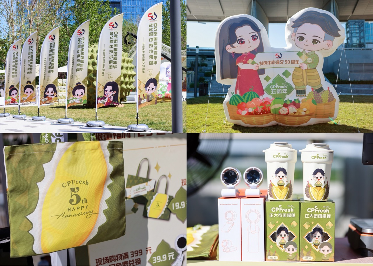 ในวาระครบรอบ 5 ปี แบรนด์ CPFresh ยังคงผลักดันผลไม้ไทยสู่ชาวจีนและผู้คนทั่วทุกมุมโลก ส่งออกคุณค่าทางวัฒนธรรมและเป็นสะพานแห่งมิตรภาพ โดยมีเป้าหมายเพื่อเป็นศูนย์กลางในการประชาสัมพันธ์และส่งเสริมทุเรียนไทย รวมถึงผลไม้คุณภาพสูงของไทยในตลาดจีน มุ่งยกระดับภาพลักษณ์ของผลไม้ไทยในฐานะสินค้าพรีเมียม และผลักดัน Soft Power ผ่านสินค้าทุเรียนซึ่งได้รับการยกย่องว่าเป็น “ราชาแห่งผลไม้ไทย” ทั้งนี้ ยังเป็นการตอกย้ำถึงภาพลักษณ์ของแบรนด์ CPFresh ที่สะท้อนวิสัยทัศน์และจิตวิญญาณความมุ่งมั่นของคนรุ่นใหม่ อีกทั้งได้จัดทำของที่ระลึกพิเศษในโอกาสครบรอบ 5 ปี ได้แก่ แก้วน้ำ ถุงผ้า และพัดลมลายพิเศษ