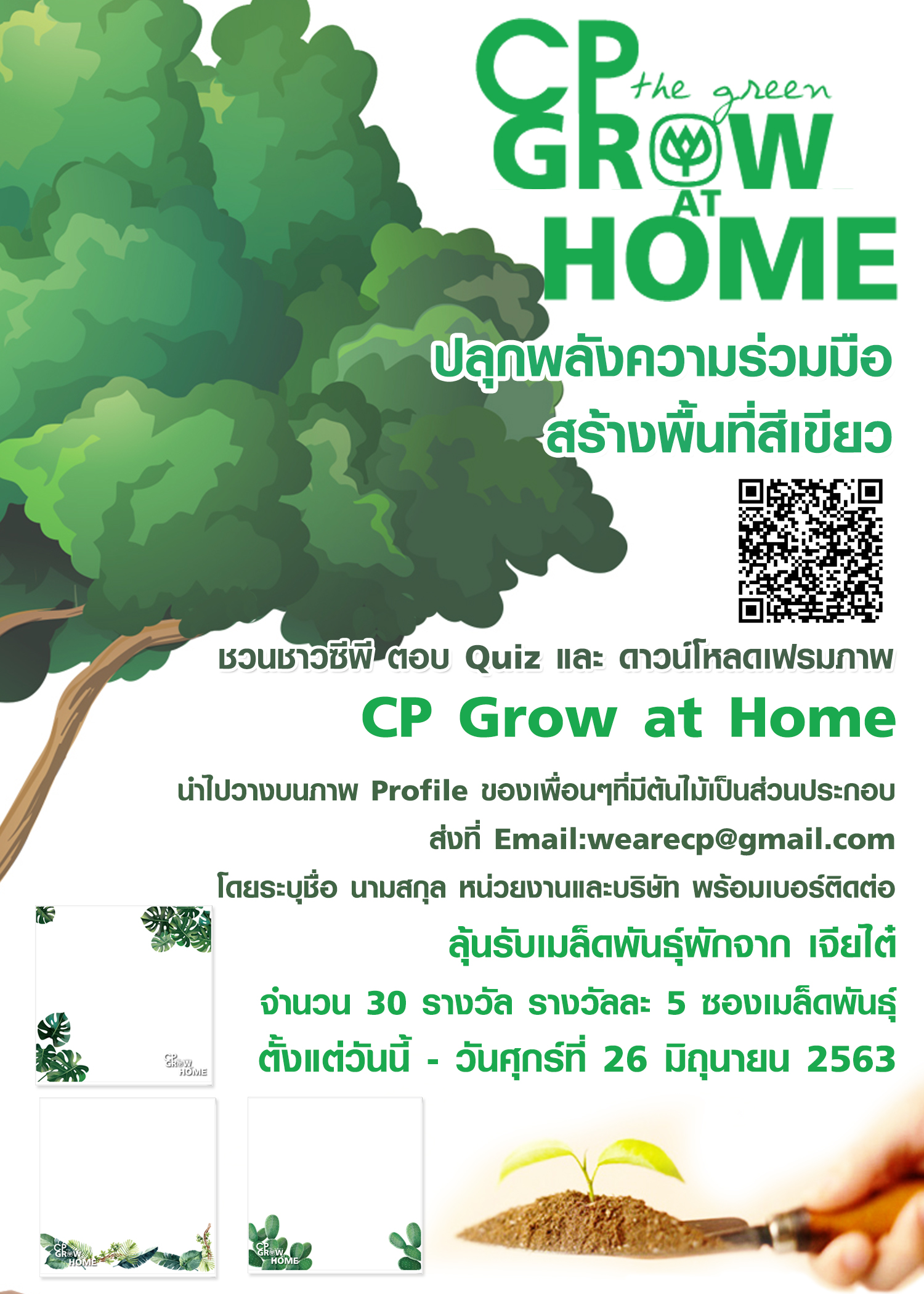 CP Grow at Home ชวนชาวซีพี ตอบ Quiz และ ดาวน์โหลดเฟรมภาพ ลุ้นรับเมล็ดพันธุ์ผักจาก เจียไต๋ จำนวน 30 รางวัล รางวัลละ 5 ซองเมล็ดพันธุ์ 8 มิถุนายน 25638 มิถุนายน 2020SystemNews, กิจกรรมเพื่อสังคม ตอบ Quiz ได่ที่นี่ >> Click ดาวน์โหลดเฟรมภาพได้ด้านล่างนี้ Post Views: 1,465