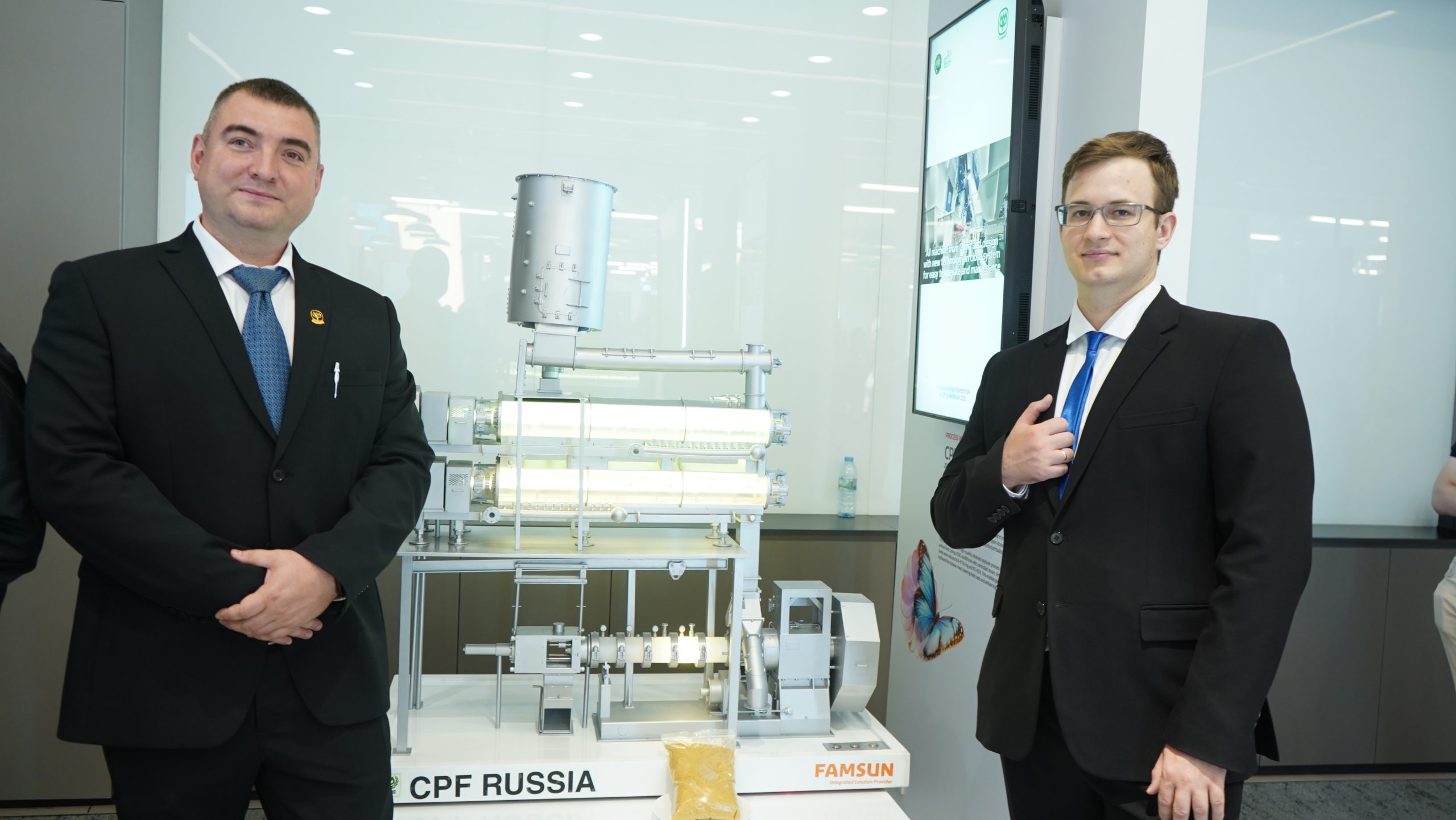 ปิดท้ายเวทีด้วยความภาคภูมิใจจาก CP Russia โดยสองหนุ่มนักพัฒนา คุณ Egor Gerasimov – Head of Extrusion Department และ คุณ Yuriy Filippov – Engineer, Extrusion Department ผู้สร้างสรรค์ “โครงการพัฒนากระบวนการผลิตถั่วนึ่งคุณภาพสูง” จาก JSC Poultry Production “Severnaya”