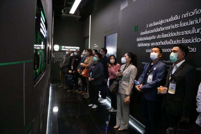 เมื่อเร็ว ๆ นี้ คณะผู้เข้าอบรมหลักสูตรผู้นำการส่งเสริมเศรษฐกิจดิจิทัล (digital CEO) รุ่นที่ 6 กว่า 100 คน เข้าเยี่ยมชม CP Innovation for Sustainability Center หรือ ศูนย์แสดงนวัตกรรมเพื่อความยั่งยืน เครือเจริญโภคภัณฑ์ ภายใต้แนวคิด Seeding for a better tomorrow – ปลูกความคิด ปลุกจินตนาการ เปลี่ยนแปลงสู่อนาคตที่ยั่งยืน ได้เรียนรู้เรื่องราวประวัติความเป็นมา รวมทั้งเส้นทางการดำเนินธุรกิจของเครือฯตั้งแต่แรกเริ่มจนถึงปัจจุบัน และก้าวเข้าสู่ศตวรรษที่ 2 ที่รวบรวมเอา วิสัยทัศน์ นวัตกรรม เทคโนโลยีและการขับเคลื่อนธุรกิจสู่ความยั่งยืนมาให้ผู้เยี่ยมชมได้สัมผัส โดยยึดหลักค่านิยม 6 ประการของเครือฯ มาร้อยเรียงเรื่องราวผ่าน 6 โซนจัดแสดง ทำความเข้าใจวิสัยทัศน์ ประวัติความเป็นมาของเครือฯ องค์กรที่มีขนาดใหญ่และดำเนินธุรกิจมายาวนานกว่า 100 ปี ผ่านการศึกษากลยุทธ์โครงการด้านความยั่งยืน ด้านการศึกษา นวัตกรรมและเทคโนโลยีต่างๆ ด้านการเกษตรและธุรกิจอาหารของกลุ่มธุรกิจภายในเครือฯ