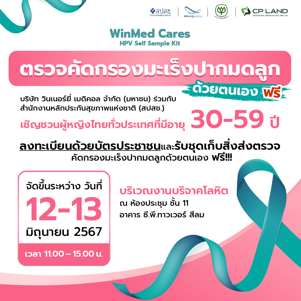 บริษัท วินเนอร์ยี่ เมดิคอล จำกัด (มหาชน) เชิญชวนพนักงานผู้หญิงที่อายุ 30 – 59 ปี ตรวจคัดกรองมะเร็งปากมดลูก