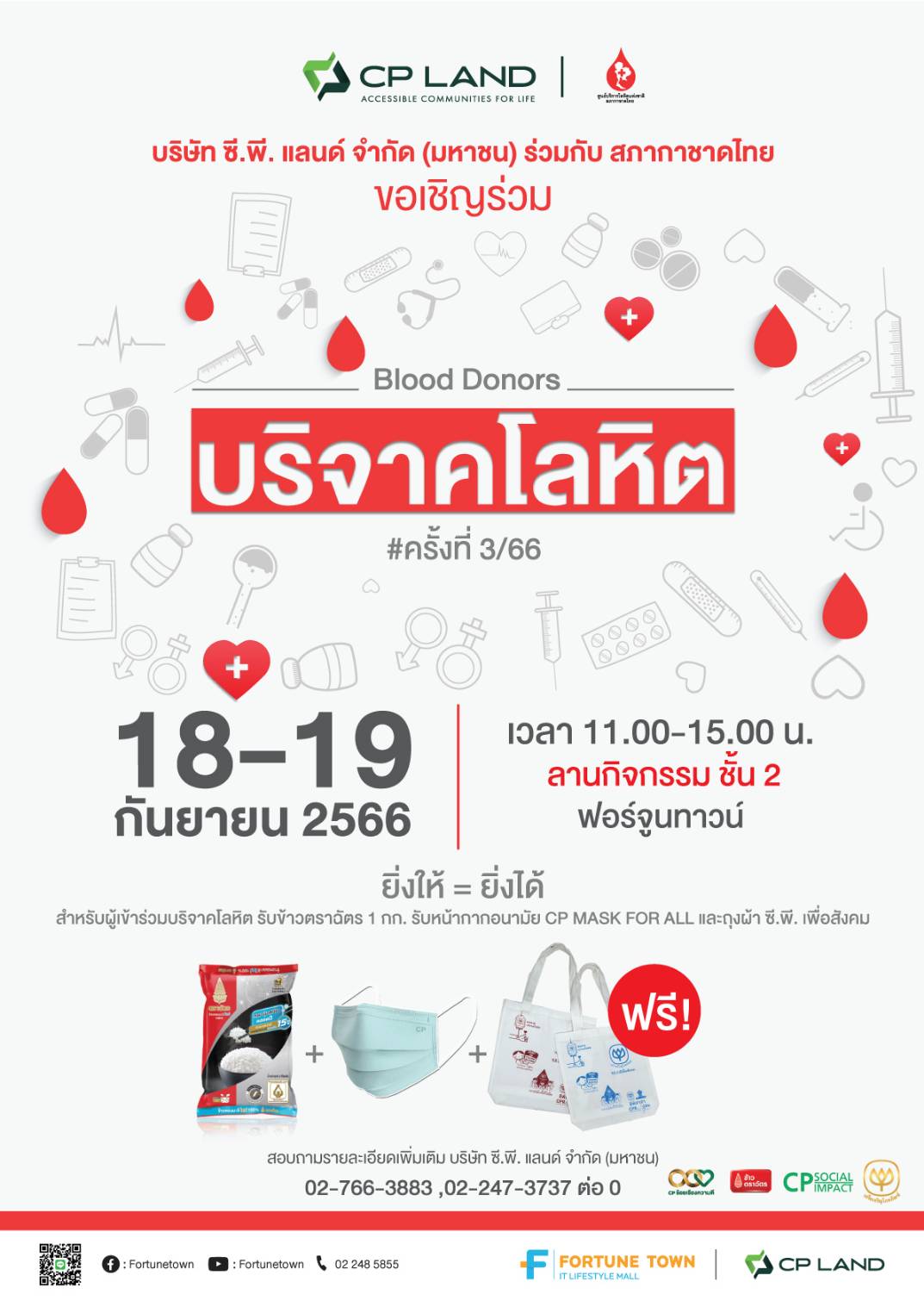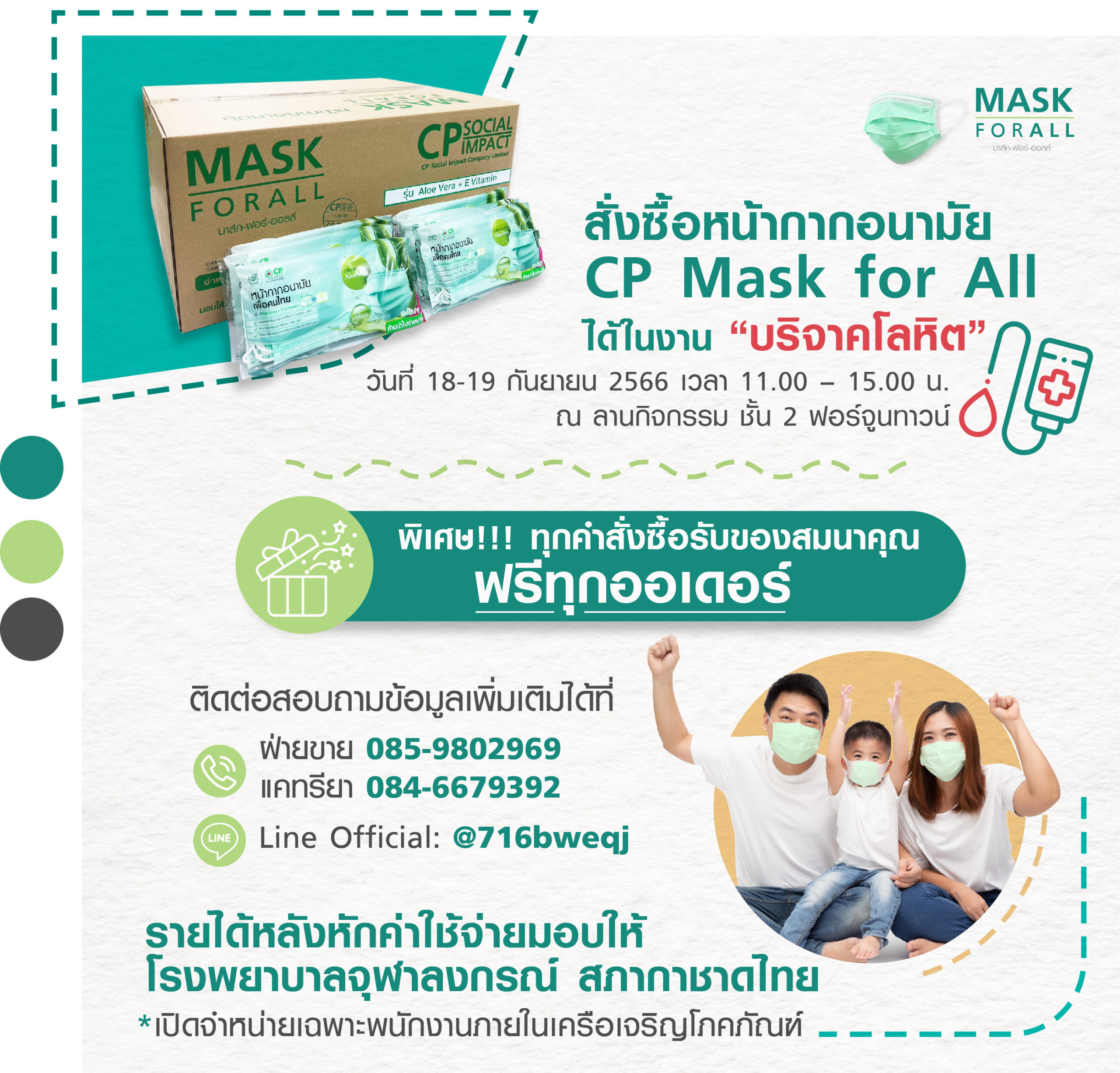 สั่งซื้อหน้ากากอนามัย CP Mask for All ได้ในงาน”บริจาคโลหิต” ที่ฟอร์จูนทาวน์ ระหว่างวันที่ 18-19 กันยายน 66