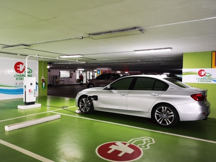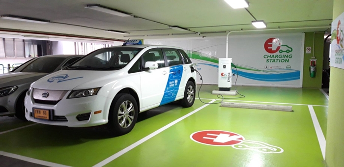 สำหรับสถานีอัดประจุไฟฟ้า (Charging Station) ให้บริการบริเวณลานจอดรถชั้น 8 อาคาร ซี.พี.ทาวเวอร์ 1 (สีลม) รูปแบบ Normal Charge 2 หัวจ่าย 1 ตู้ รองรับรถยนต์ไฟฟ้าแบบ Plug-in Hybrid (PHEV) และ Battery Electrical Vehicle (BEV) โดยมีสายชาร์จ Type 1 และ Type 2 บริการชาร์จได้พร้อมกัน 2 คัน