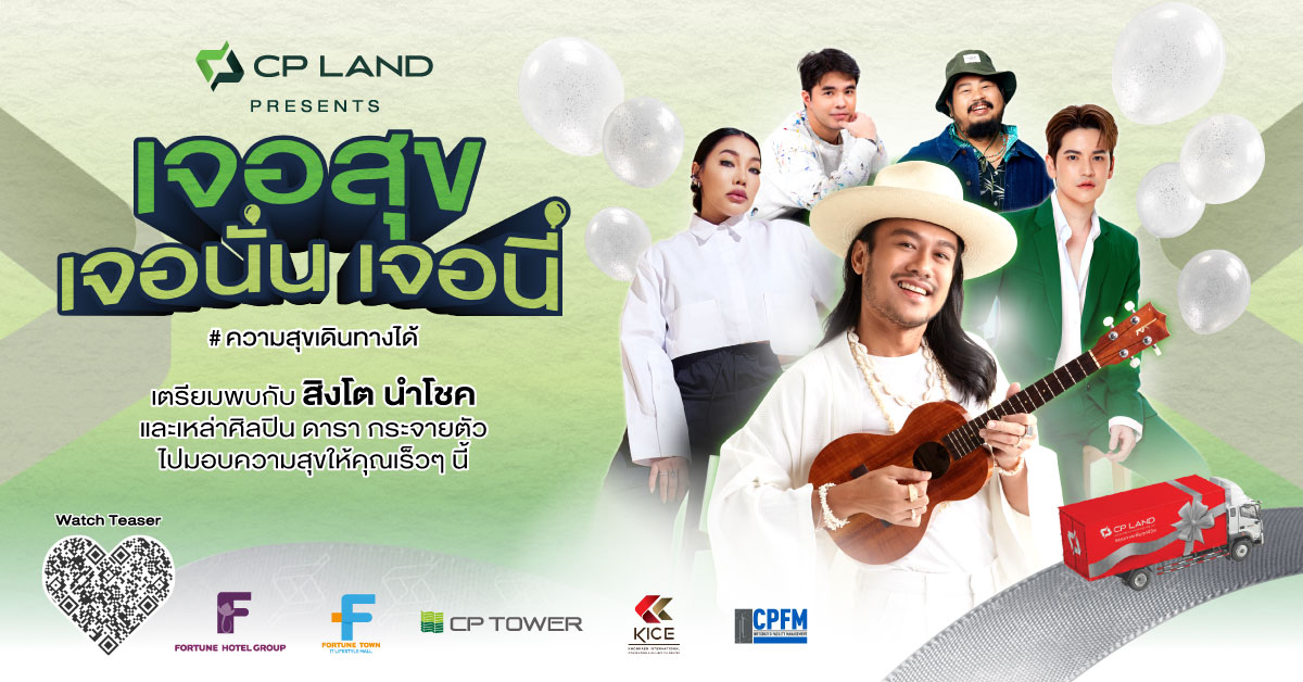คุณดำรงศักดิ์ ถุงเงิน รองกรรมการผู้จัดการอาวุโส ฝ่ายขายและการตลาดโครงการ บริการหลังการขายและลูกค้าสัมพันธ์ บริษัท ซี.พี. แลนด์ จำกัด (มหาชน) หรือ CP LAND เปิดเผยว่า  CP LAND เดินหน้าจัดกิจกรรมส่งความสุขต่อเนื่อง หลังจากที่ประกาศรีเฟรชแบรนด์ใหม่ในรอบ 10 ปี ภายใต้แนวคิด ‘คุณภาพเพื่อทุกชีวิต’ หรือ Accessible Communities for Li fe’ เพื่อตอบโจทย์ไลฟ์สไตล์ของทุกชีวิต และเพื่อต่อยอดความสำเร็จจากภาพยนตร์โฆษณา ‘ความสุขเกิดขึ้นได้ทุกที่รอบตัวคุณ’ ที่นำแสดงโดย สิงโต นำโชค ให้เกิดขึ้นจริงด้วยการขนทัพคาราวานความสุขทั่วไทยผ่านกลยุทธ์ขับเคลื่อนประสบการณ์ผ่านเสียงเพลง (Dynamic Experiential Marketing Strategy) กับแคมเปญ CP LAND Presents ‘เจอสุข เจอนั่น เจอนี่’ นำทัพความสุขโดย สิงโต นำโชค คนเดิมพร้อมเสริมทัพคาราวานความสุขกับศิลปินมากมาย ซึ่งคาราวานความสุขจะเริ่มออกเดินทางไป ‘เจอสุข เจอนั่น เจอนี่’ เริ่มครั้งแรกตั้งแต่