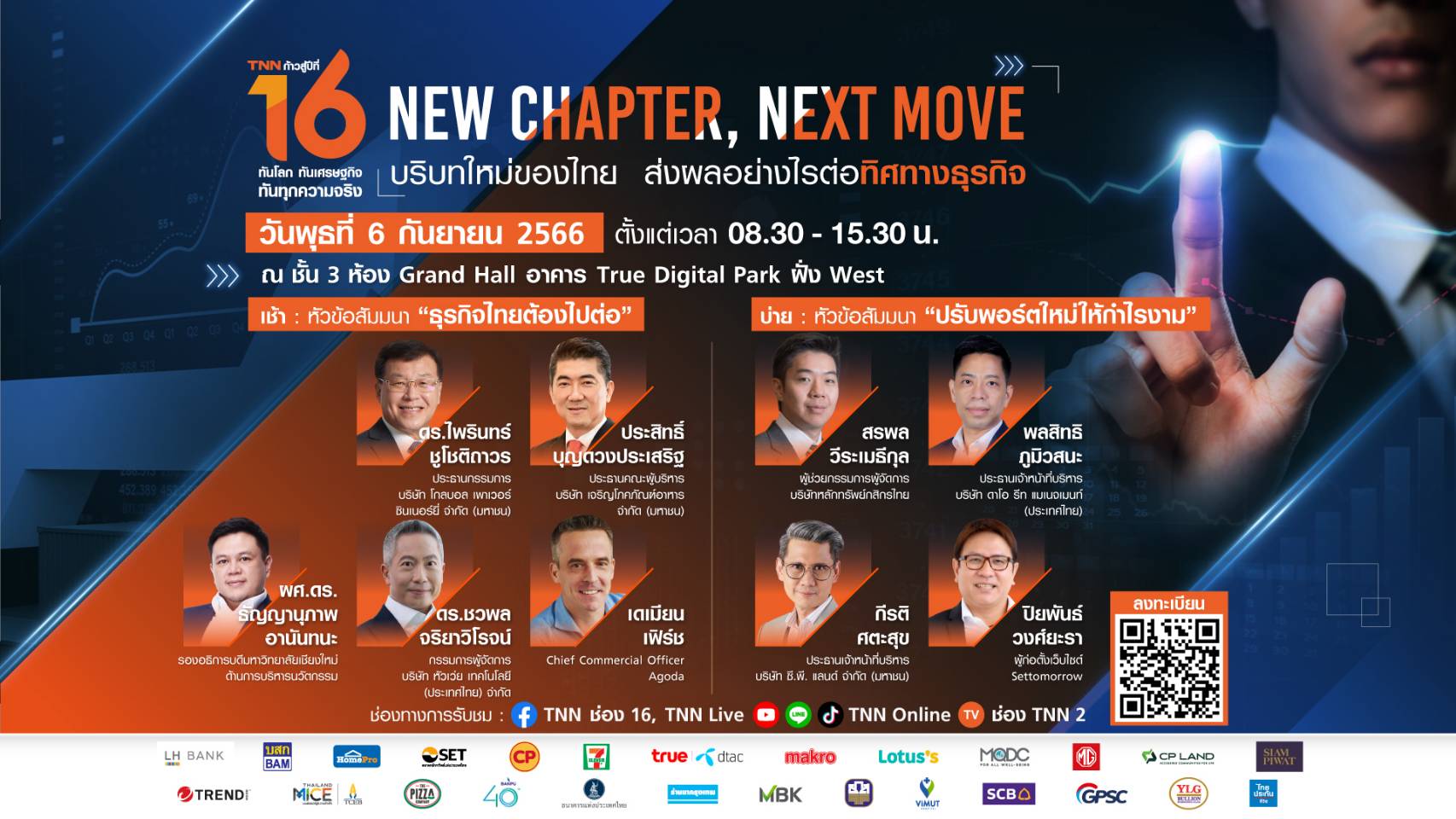 เข้าร่วมถ่ายทอดความรู้ประกอบคู่กับผู้บริหารบริษัทชั้นนำของไทยและสากล อาทิ CPF, Lazada, Agoda, Amazon GPSC, DAOL REIT, Set Tomorrow และ หลักทรัพย์กสิกรไทย ในงานสัมมนา “บริบทใหม่ของไทย ส่งผลอย่างไรต่อทิศทางธุรกิจ” ในหัวข้อ “ปรับพอร์ตใหม่ให้กำไรงาม” ซึ่งงานสัมมนาจะจัดขึ้นในวันพุธที่ 6 กันยายน 2566 เวลา 8.30 -15.30 น. ณ อาคารทรู ดิทัล พาร์ค สุขุมวิท 101 หรือรับชม Live สดผ่านช่องทางออนไลน์ของ TNN 16 ฟรีไม่มีค่าใช้จ่าย