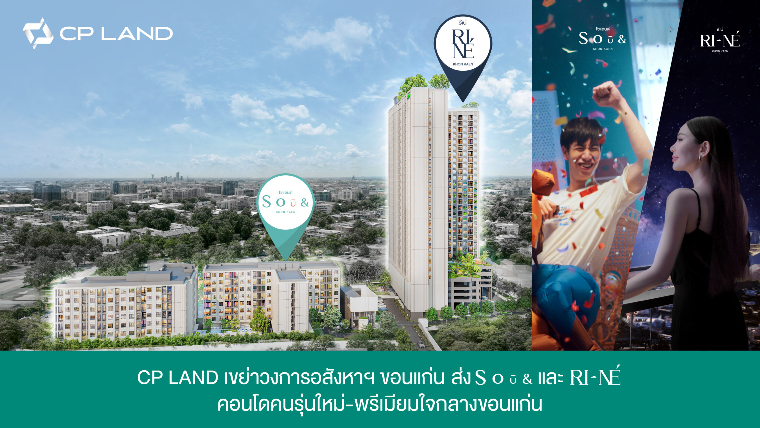 17 มิถุนายน 2567 , ขอนแก่น – CP LAND บริษัทผู้พัฒนาอสังหาริมทรัพย์ชั้นนำของประเทศไทย เขย่าวงการอสังหาริมทรัพย์จังหวัดขอนแก่น ส่ง 2 โครงการคอนโดมิเนียมน้องใหม่ใจกลางเมืองขอนแก่น SOū& (โซ-แอนด์) และ RI–NÉ (รี-เน่) พร้อมปล่อยภาพยนตร์โฆษณาดึง หลิน-มาลิน ชระอนันต์ ดีกรี Miss Grand Thailand 2024 มาร่วมแสดง เอาใจลูกค้ากลุ่มนิวเจน-พรีเมียม