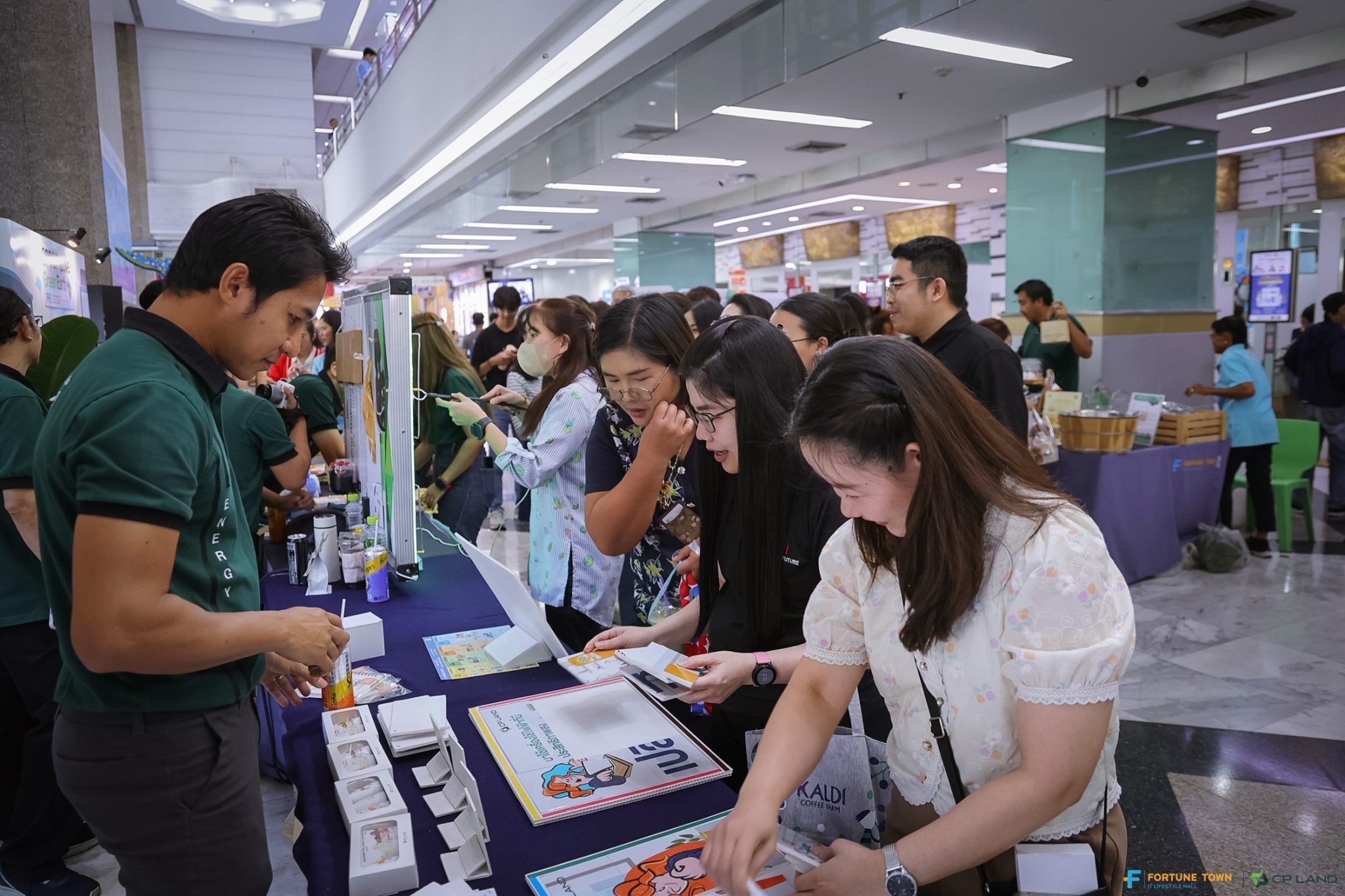 กิจกรรมต่อเนื่องอาคารที่ 3 ของเดือน ส.ค. 2567 CP LAND ร่วมกับเครือซีพี พร้อมด้วยพันธมิตร ด้านพลังงานและสิ่งแวดล้อม ร่วมจัดกิจกรรม CPTGF Love Green Earth 2024 ณ อาคาร ซี.พี. ทาวเวอร์ 2 (ฟอร์จูนทาวน์) ภายใต้ธีม 3R2E ได้แก่ Reuse, Reduce, Recycle, Energy และ Environment เพื่อเผยแพร่ความรู้และความเข้าใจด้านการใช้พลังงาน และทรัพยากรอย่างมีประสิทธิภาพ พร้อมขับเคลื่อนสังคมด้านความยั่งยืน ซึ่งสอดคล้องกับเป้าหมายการพัฒนาอย่างยั่งยืน (Sustainable Development Goals: SDGs) โดยได้รับเกียรติจาก คุณจักรพันธ์ ปิยะพฤกษพรรณ ผู้อำนวยการบริหาร ซี.พี. แลนด์ ให้เกียรติเป็นประธานกล่าวเปิดงาน พร้อมทั้งเข้าร่วมเสวนา Talk รักษ์โลก โดยมี คุณชุติสา ศาสตร์สาระ ผู้ช่วยผู้อำนวยการสำนักงานเขตดินแดง, คุณศาลิดา เสรเมธากุล ผู้จัดการฝ่ายสื่อสารภายในและโครงการความรับผิดชอบต่อสังคม ซี.พี. แลนด์, คุณภัทราภรณ์ พลอยวิเลิศ ผู้จัดการแผนกด้านธุรกิจเพื่อสังคม ฝ่ายพัฒนาความยั่งยืนภาครัฐ เครือเจริญโภคภัณฑ์ และ คุณสุริยันต์ ทรัพย์พาลี ช่างระดับ 7 กองส่งเสริมมาตรฐานประสิทธิภาพพลังงาน ฝ่ายจัดการด้านการใช้พลังงานและสิ่งแวดล้อม การไฟฟ้าฝ่ายผลิตแห่งประเทศไทย (กฟผ.) ร่วมแชร์ประสบการณ์การทำงาน การใช้ชีวิตสายกรีน