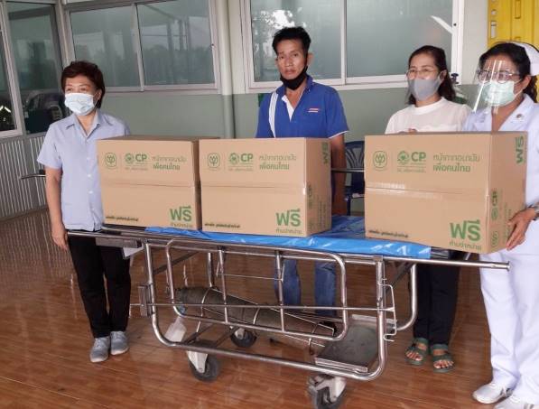 แม้สถานการณ์โควิด 19 ในประเทศไทยจะดีขึ้นอย่างต่อเนื่อง หลังพบผู้ติดเชื้อลดน้อยลง แต่โรงงานหน้ากากอนามัยซีพียังคงไม่หยุดเดินหน้าการผลิตหน้ากากอนามัยแบบ surgical mask เพื่อแจกจ่ายฟรีแก่โรงพยาบาล บุคลากรณ์ทางการแพทย์และประชาชนทั่วไป ซึ่งในหลายพื้นที่ยังคงประสบปัญหาขาดแคลน ข้อมูลล่าจาก www.cpmaskforall.com เมื่อวันที่ 14 พฤษภาคม 2563 มียอดการผลิตรวมทั้งสิ้น 2,329,200 ชิ้น โรงพยาบาลจุฬาลงกรณ์ สภากาชาดไทย แจกจ่ายไปยัง 174 โรงพยาบาล จำนวนรวม 2,058,000 ชิ้น