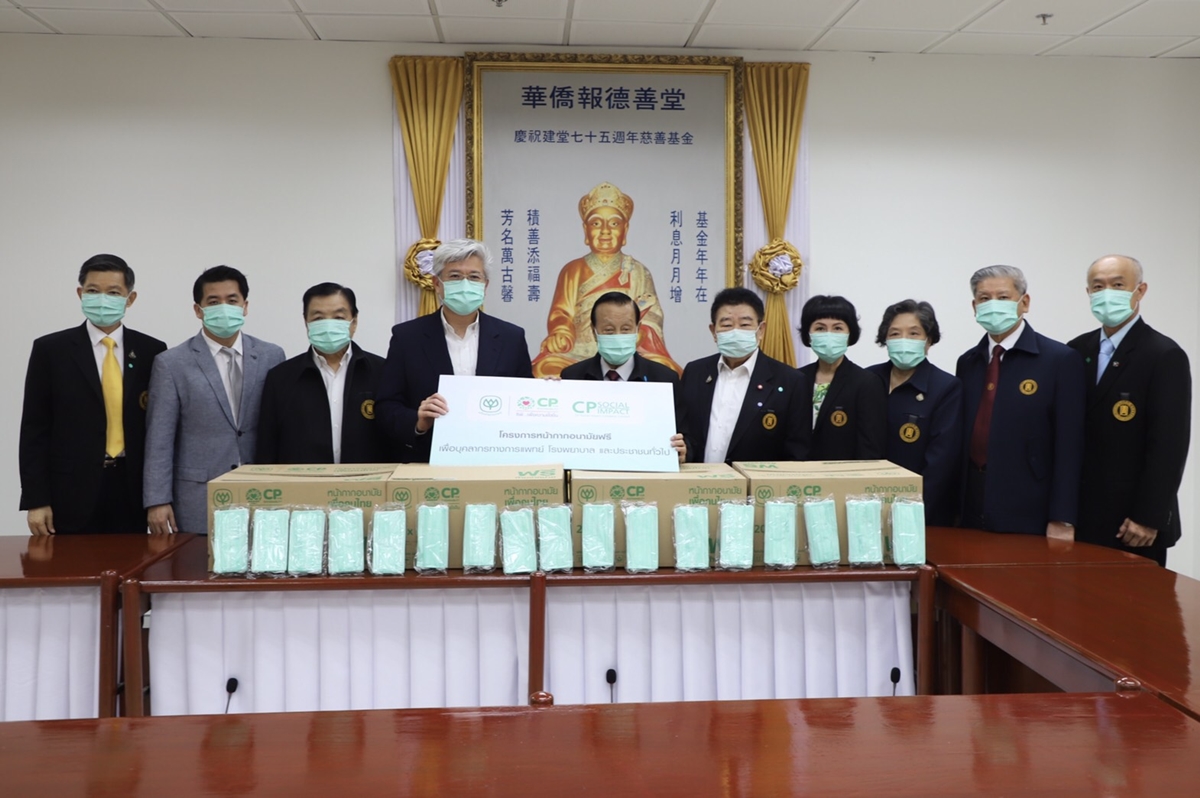 วันนี้ 18 มิถุนายน 2563 คุณนพปฎล เดชอุดม ประธานคณะผู้บริหารด้านความยั่งยืนองค์กร เครือเจริญโภคภัณฑ์ ส่งต่อความห่วงใยมอบหน้ากากอนามัยจากโครงการหน้ากากอนามัยฟรีเพื่อบุคลากรทางการแพทย์ โรงพยาบาล และประชาชนทั่วไป แก่ มูลนิธิป่อเต็กตึ๊ง โดยมี คุณวิเชียร เตชะไพบูลย์ ประธานกรรมการ มูลนิธิป่อเต็กตึ๊ง พร้อมคณะกรรมการมูนิธิฯ เป็นผู้รับมอบเพื่อนำไปมอบให้กับเจ้าหน้าที่อาสาสมัครกู้ภัยเพื่อใช้ในการปฏิบัติงาน รวมถึงประชาชนผู้ด้อยโอกาสที่อยู่ในกลุ่มเสี่ยง เพื่อใช้ป้องกันโรคโควิด-19