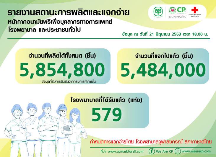 รายงานสถานะการผลิตและแจกจ่ายหน้ากากอนามัยฟรีเพื่อบุคลากรทางการแพทย์ รพ.และประชาชนทั่วไป / 21 มิ.ย. 63 : 18.00 น. 22 มิถุนายน 256323 มิถุนายน 2020SystemCP Mask ภารกิจนี้เพื่อชาติ, News สามารถอัพเดทความเคลื่อนไหวได้ที่ > www.cpmaskforall.com Post Views: 1,086