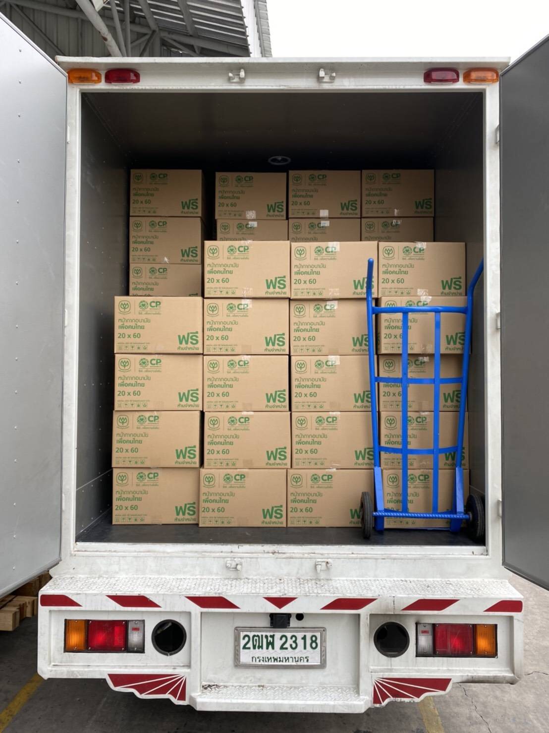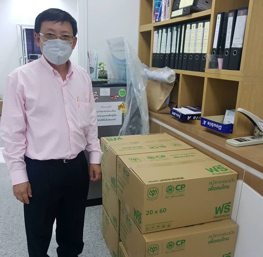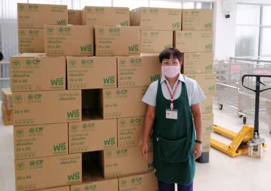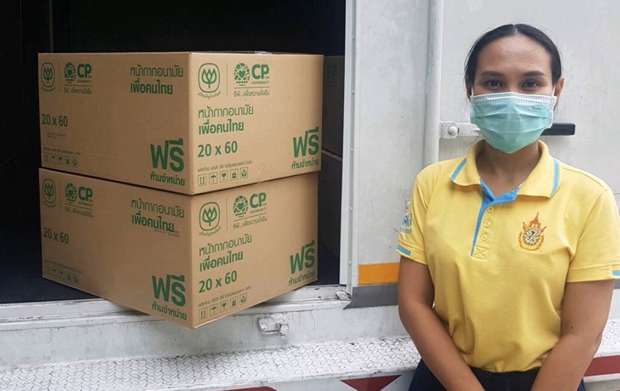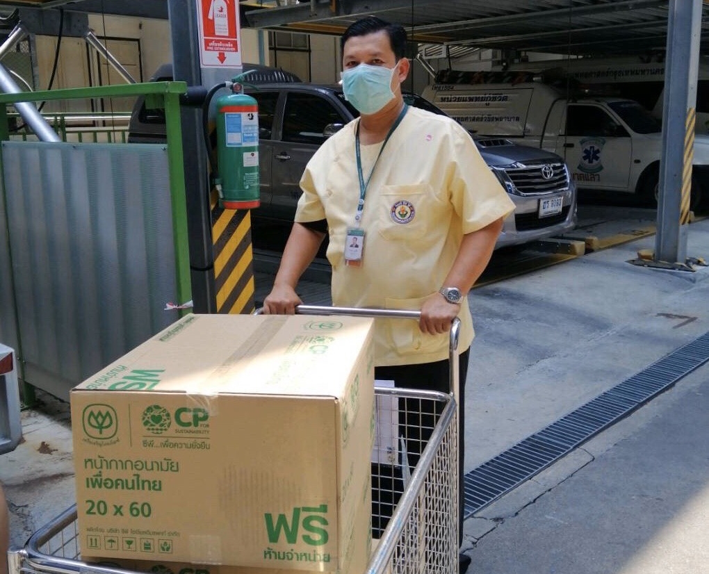 หลังจากที่ซีพีสร้างโรงงานผลิตหน้ากากอนามัยเสร็จเรียบร้อย ก็ได้ส่งมอบให้โรงพยาบาลจุฬาลงกรณ์ สภากาชาดไทย รับหน้าที่แจกจ่ายฟรี แก่บุคลากรทางการแพทย์ โรงพยาบาล และประชาชนทั่วไป ซึ่งได้เริ่มเดินสายแจกจ่าย ตั้งแต่ 16 เมษายนที่ผ่านมา จนถึงปัจจุบันโรงพยาบาลจุฬาลงกรณ์ สภากาชาดไทย ได้แจกจ่ายหน้ากากอนามัยไปตามโรงพยาบาลรัฐและศูนย์บริการทางการแพทย์ในทุกภูมิภาคทั่วประเทศแล้วกว่า 20 แห่ง และในวันนี้ (29 เม.ย.63) หน้ากากอนามัยฟรีเพื่อบุคลากรทางการแพทย์ โรงพยาบาล และประชาชนทั่วไป จะส่งตรงไปโรงพยาบาลต่างๆ เพิ่มอีกจำนวน 32 แห่ง เพื่อให้แพทย์ พยาบาล และบุคลากรทางการแพทย์ ใช้ป้องกันโรคระบาดโควิด-19