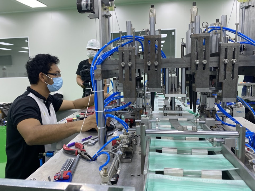 หลังจากที่เครื่องจักรผลิตหน้ากากอนามัยส่งตรงจากจีนถึงไทยอยู่ระหว่างการทดสอบระบบ