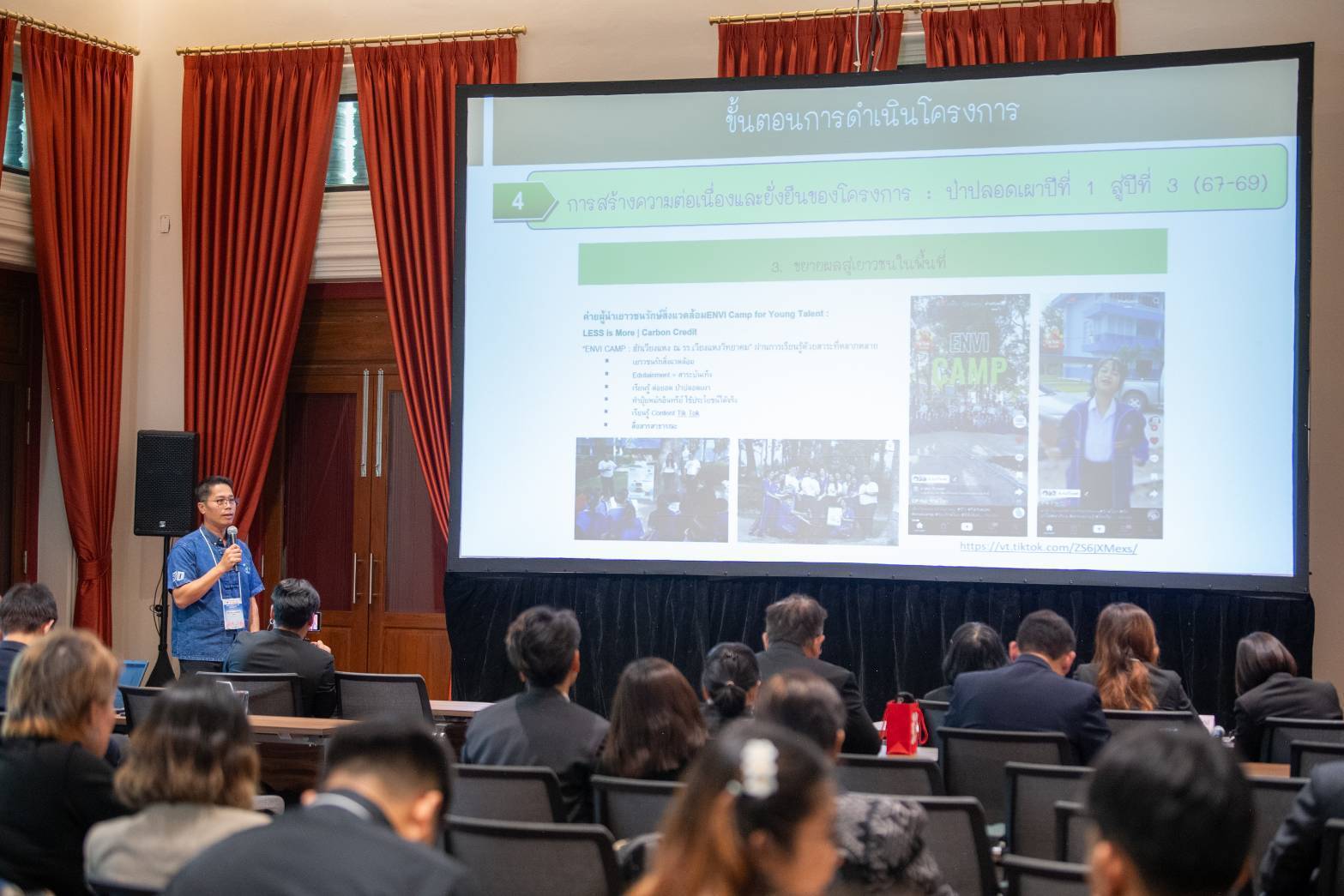 การนำเสนอผลงานครั้งนี้ เป็นการนำเสนอ “โครงการป่าปลอดเผา เครือข่ายความร่วมมือป่าชุมชน อำเภอเวียงแหง จังหวัดเชียงใหม่” โดย ผู้ช่วยศาสตราจารย์ ดร.แสนวสันต์ ยอดคำ ผู้ช่วยอธิการบดี และอาจารย์ประจำหลักสูตรวิศวกรรมเกษตร มหาวิทยาลัยแม่โจ้ ร่วมกับ นางศิริลักษณ์ บ่อสร้าง ผู้จัดการฝ่ายด้านความยั่งยืนภาครัฐและกิจการสัมพันธ์ เครือเจริญโภคภัณฑ์ ซึ่งเป็นความร่วมมือในการดำเนินงานกับเครือซีพี ภายใต้โครงการ “ซีพีความดี สิ่งแวดล้อมยั่งยืน ป่าปลอดเผา” จังหวัดเชียงใหม่