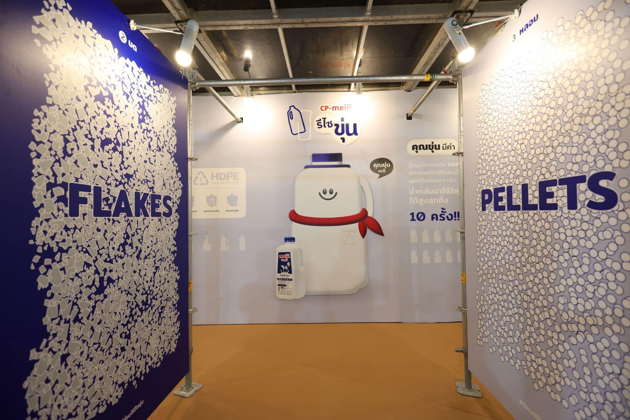 คุณชาลินี พูนลาภมงคล ผู้ช่วยผู้อำนวยการ ซีพี-เมจิ กล่าวว่า บริษัทฯ ดำเนินธุรกิจโดยมีเป้าหมายสู่ความอย่างยั่งยืน ภายใต้แนวคิด “เพิ่มคุณค่าชีวิต-Enriching Life” ตามแนวทางเศรษฐกิจหมุนเวียน (Circular Economy) สนับสนุนการใช้สิ่งทรัพยากรให้คุ้มค่าที่สุดและนำกลับมาใช้ใหม่ เพื่อร่วมลดผลกระทบสิ่งแวดล้อม โดยเฉพาะพลาสติกประเภท HDPE (High Density Polyethylene) หรือพลาสติกแบบขุ่น ซึ่งเป็นพลาสติกที่ใช้ในการผลิตบรรจุภัณฑ์นมเมจิ ล่าสุด เปิดตัว “โครงการ ซีพี-เมจิ รีไซขุ่น” รณรงค์ให้คนไทยร่วมกันส่งแกลลอนนมที่ใช้แล้ว เข้าสู่กระบวนการจัดการที่ถูกต้องและเพิ่มคุณค่าด้วยการรีไซเคิลเป็นผลิตภัณฑ์ใหม่ที่มีประโยชน์ได้อีก
