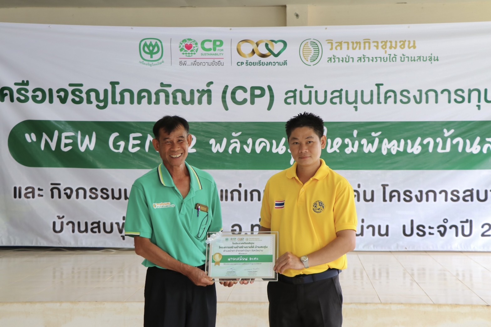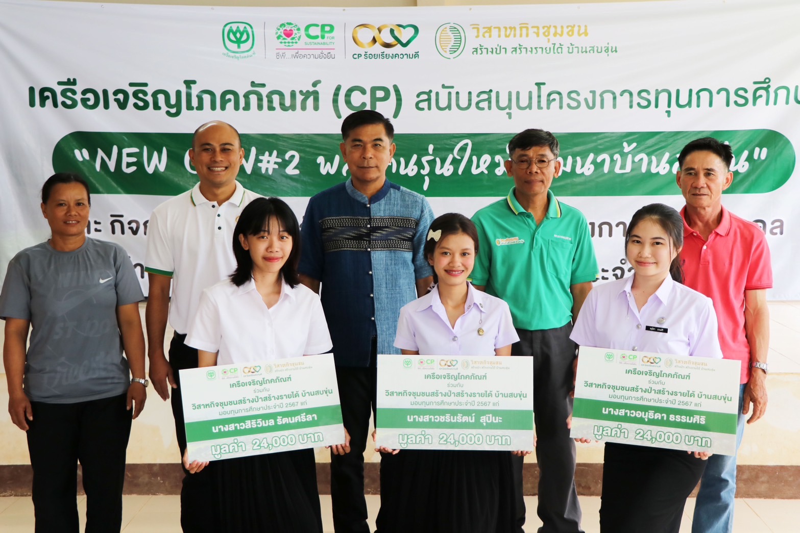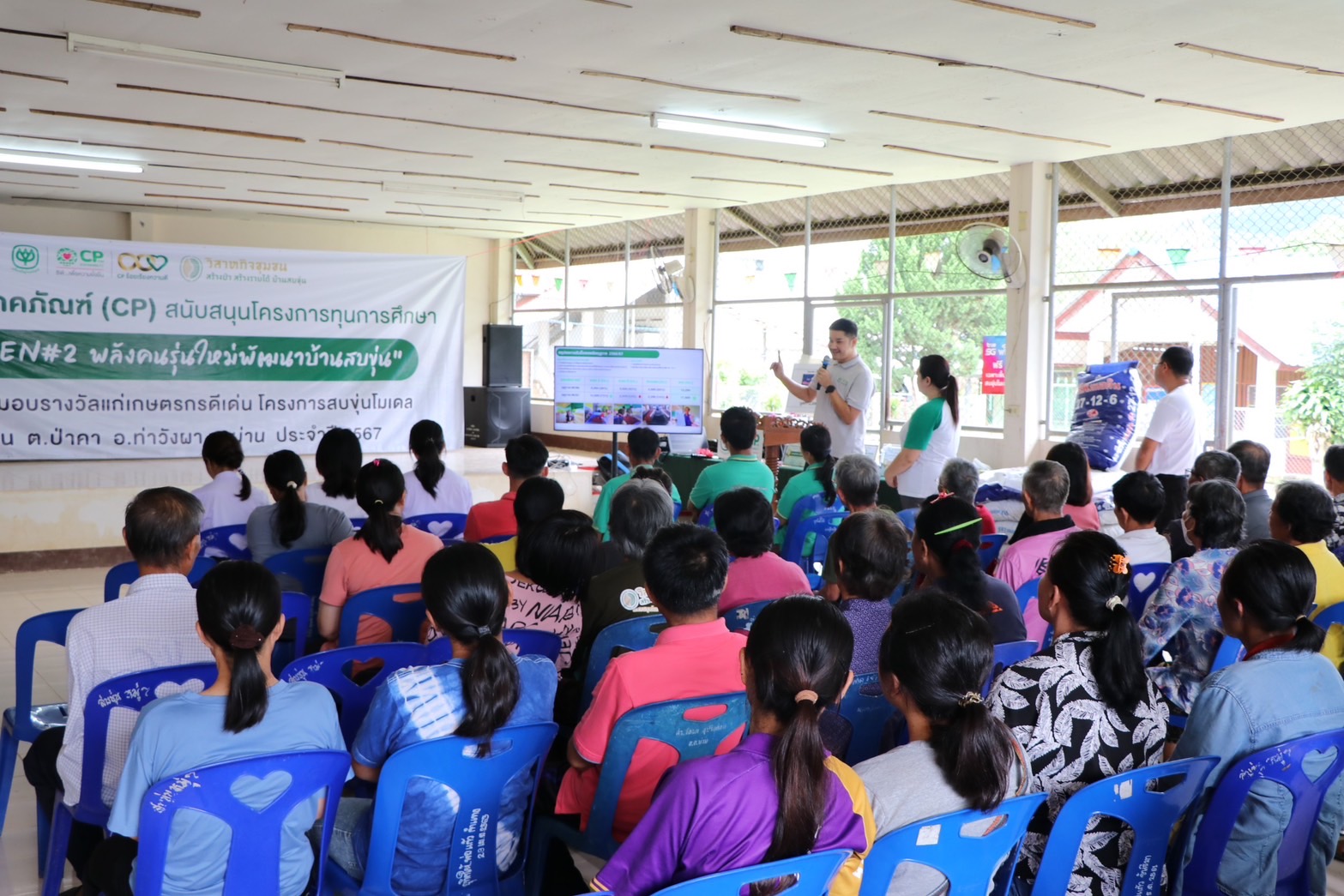 เมื่อเร็ว ๆ นี้ เครือเจริญโภคภัณฑ์ จัดพิธีมอบทุนการศึกษา โครงการ “NEW GEN#2 พลังคนรุ่นใหม่พัฒนาบ้านสบขุ่น” มอบโอกาสทางการศึกษาให้แก่บุตรธิดาและแบ่งเบาภาระเกษตรกรบ้านสบขุ่น และมอบรางวัลแก่เกษตรกรดีเด่น ประจำปี 2566 ของวิสาหกิจชุมชนสร้างป่าสร้างรายได้บ้านสบขุ่น เพื่อเป็นเกียรติแก่เกษตรกร ภายใต้โครงการสบขุ่นโมเดล โดยมี คุณสุทัศน์ จินตเวชศาสตร์ นายอำเภอท่าวังผา เป็นประธานในพิธีมอบ พร้อมด้วย คุณอรรถวิทย์ ยุทธยศ ผู้จัดการทั่วไปด้านพัฒนาความยั่งยืนภาครัฐและกิจการสัมพันธ์ เครือเจริญโภคภัณฑ์ เกษตรกรและชาวบ้าน ร่วมแสดงความยินดี