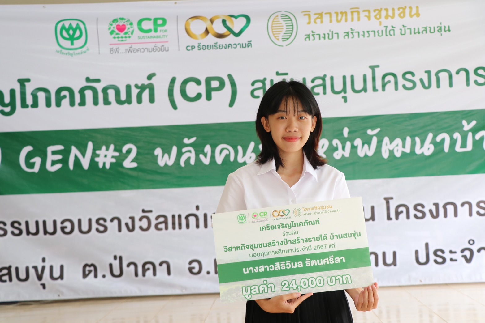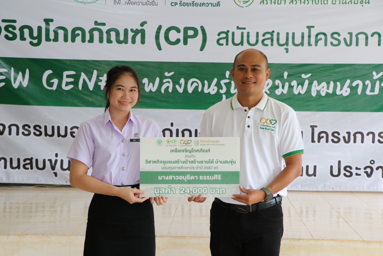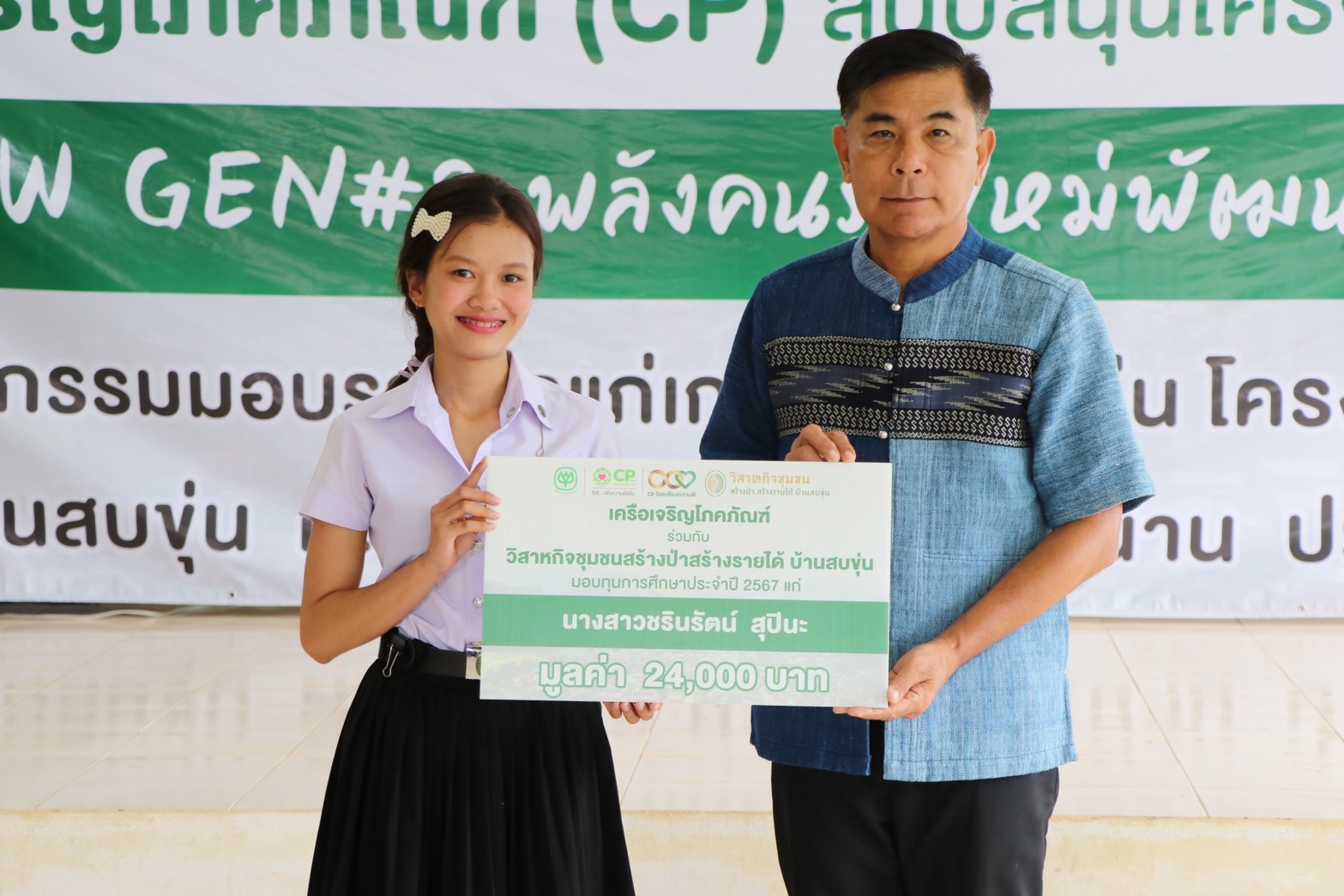 เมื่อเร็ว ๆ นี้ เครือเจริญโภคภัณฑ์ จัดพิธีมอบทุนการศึกษา โครงการ “NEW GEN#2 พลังคนรุ่นใหม่พัฒนาบ้านสบขุ่น” มอบโอกาสทางการศึกษาให้แก่บุตรธิดาและแบ่งเบาภาระเกษตรกรบ้านสบขุ่น และมอบรางวัลแก่เกษตรกรดีเด่น ประจำปี 2566 ของวิสาหกิจชุมชนสร้างป่าสร้างรายได้บ้านสบขุ่น เพื่อเป็นเกียรติแก่เกษตรกร ภายใต้โครงการสบขุ่นโมเดล โดยมี คุณสุทัศน์ จินตเวชศาสตร์ นายอำเภอท่าวังผา เป็นประธานในพิธีมอบ พร้อมด้วย คุณอรรถวิทย์ ยุทธยศ ผู้จัดการทั่วไปด้านพัฒนาความยั่งยืนภาครัฐและกิจการสัมพันธ์ เครือเจริญโภคภัณฑ์ เกษตรกรและชาวบ้าน ร่วมแสดงความยินดี