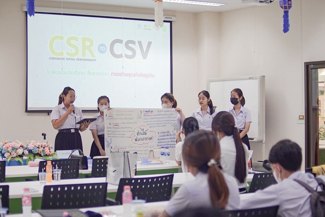 กิจกรรมในครั้งนี้ ผู้เข้าร่วมได้เรียนรู้ความแตกต่างของรูปแบบการจัดกิจกรรมที่ร่วมรับผิดชอบสังคมและสิ่งแวดล้อมขององค์กร (CSR) สู่การสร้างคุณค่าต่อธุรกิจ (CSV) ซึ่งแนวคิด CSR เป็นความรับผิดชอบขององค์กรหรือบริษัทที่มีต่อสังคม ส่วนใหญ่อยู่ในรูปแบบของการจัดกิจกรรมเพื่อสังคม คืนผลกำไรบางส่วนให้กับสังคม ส่วนแนวคิด CSV เป็นการสร้างสรรค์คุณค่าธุรกิจร่วมกับชุมชน โดยการสร้างกระบวนการใหม่ ๆ เพื่อสร้างคุณค่าจากสินค้าและบริการของธุรกิจให้กับชุมชน ตลอดจนร่วมกันเพิ่มความสามารถในการแข่งขันและสร้างกำไรสูงสุดอย่างเหมาะสม ซึ่งส่วนใหญ่ดำเนินธุรกิจในรูปแบบธุรกิจเพื่อสังคม ในการนี้ผู้เข้าร่วมยังได้ร่วมกันฝึกปฏิบัติออกแบบกิจกรรม CSV ส่งมอบคุณค่าให้กับมหาวิทยาลัยหรือชุมชนของตนเองผ่านกระบวนคิดเชิงออกแบบ หรือ Design Thinking