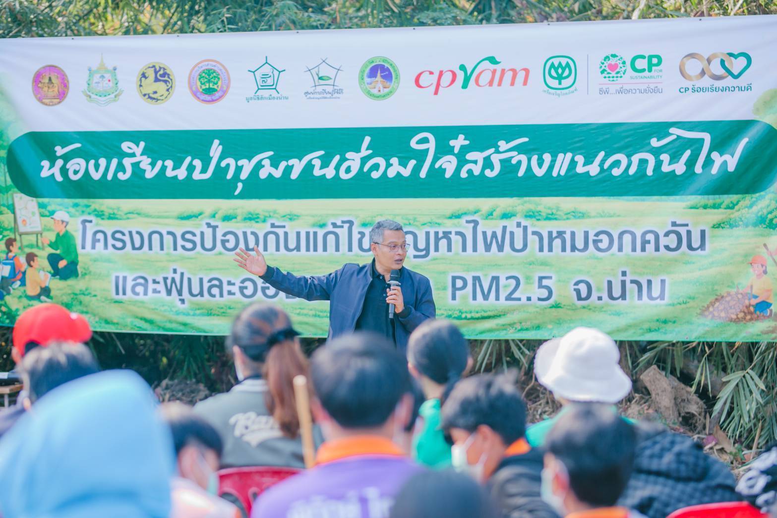 นายบัญชา โชติกำจร ผู้อำนวยการสำนักงานด้านความยั่งยืนและพัฒนาชุมชน เครือเจริญโภคภัณฑ์ กล่าวว่า ปัญหาไฟป่าและ PM2.5 ไม่ใช่หน้าที่ของหน่วยงานใดหน่วยงานหนึ่ง แต่เป็นความท้าทายร่วมกันของทุกภาคส่วน กิจกรรมครั้งนี้จึงไม่ได้มุ่งเพียงการทำแนวกันไฟ หากแต่เป็นการสร้างองค์ความรู้ สร้างเครือข่าย และวางระบบความร่วมมือระยะยาวในระดับชุมชน เพื่อให้คนในพื้นที่สามารถดูแลทรัพยากรของตนเองได้อย่างเข้มแข็ง
