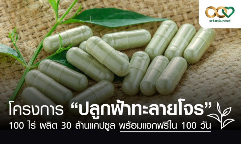 จะเห็นได้ว่า ในช่วงเวลาที่ผ่านมา ฟ้าทะลายโจรเริ่มขาดแคลน ทำให้คนไทยหลายส่วนไม่สามารถเข้าถึงได้ เครือซีพี จึงขอเป็นส่วนหนึ่งในการร่วมแก้ปัญหาดังกล่าว โดยจะริเริ่มโครงการปลูกฟ้าทะลายโจร ในพื้นที่ 100 ไร่ที่จ.สระบุรี และใช้เวลา 100 วัน นับจากวันนี้ เพื่อพร้อมแจกจ่ายฟ้าทะลายโจร จำนวน 30 ล้านแคปซูลฟรีให้พี่น้องประชาชนและชุมชน โดยจะดำเนินการแบบปลอดสารพิษทั้งกระบวนการ และมีการใช้เทคโนโลยีเพื่อให้เกิดความปลอดภัยและมีคุณภาพ