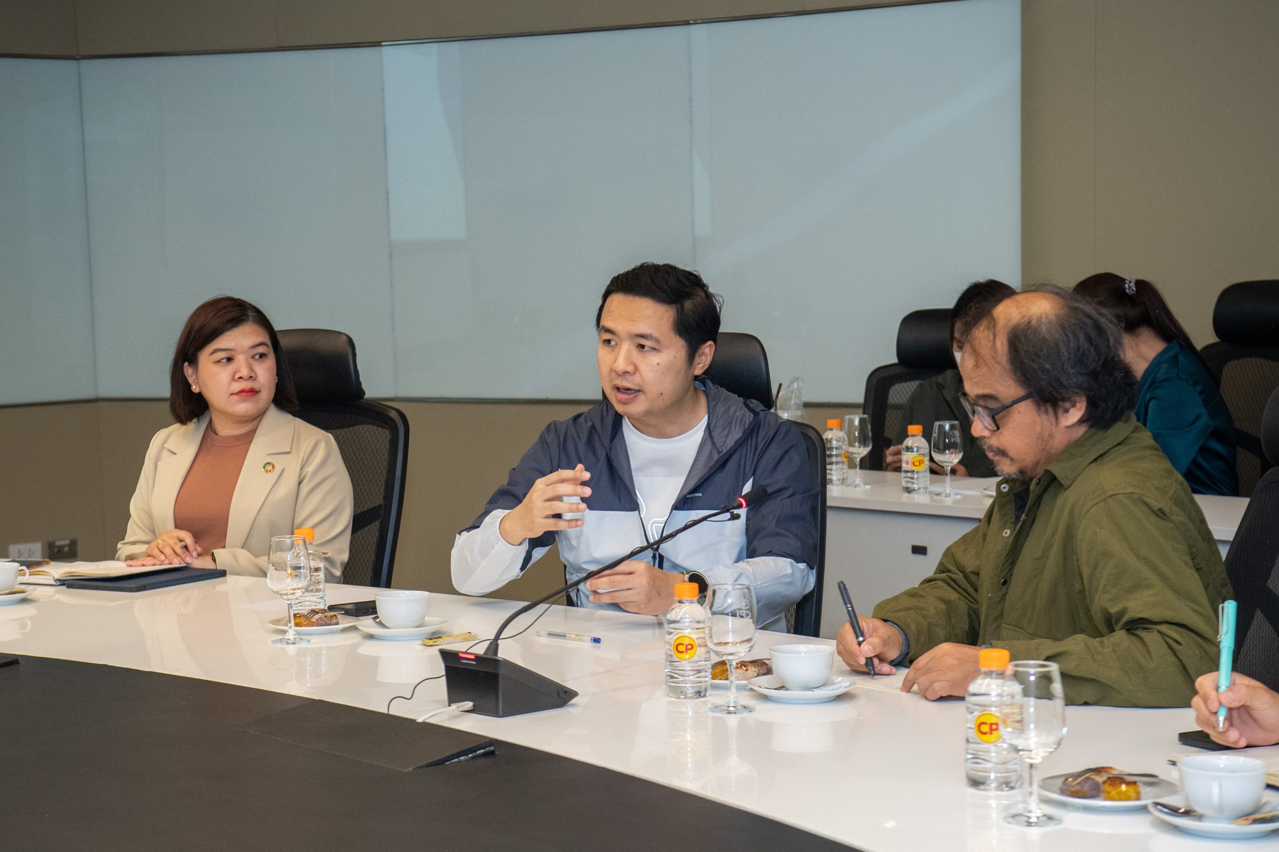 คุณจอมกิตติ ศิริกุล รองกรรมการผู้จัดการใหญ่บริหาร ผู้บริหารสูงสุด ด้านพัฒนาความยั่งยืนภาครัฐและกิจการสัมพันธ์ เครือเจริญโภคภัณฑ์ พร้อมดร.สดุดี สุพรรณไพ รองกรรมการผู้จัดการด้านความยั่งยืนฯ บริษัท เจริญโภคภัณฑ์โปรดิ๊วส จำกัด-CPP คุณวรพจน์ สุรัตวิศิษฎ์ รองกรรมการผู้จัดการ บริษัท กรุงเทพโปรดิ๊วส จำกัด (มหาชน)-BKP และทีมคนรุ่นใหม่จาก One Young World เครือซีพีในแคมเปญ “#Fightหมอกควัน พลังคนรุ่นใหม่ สร้างอากาศสะอาด เพื่อพรุ่งนี้ที่ดีกว่า” ร่วมให้การต้อนรับภาคประชาสังคม คุณเดโช ไชยทัพ นายกสมาคมเพื่อการพัฒนาที่ยั่งยืน ภาคเหนือ และคุณสมเกียรติ มีธรรม ผู้อำนวยการสถาบันอ้อผญา ในการลงพื้นที่แลกเปลี่ยนความเห็น พร้อมเยี่ยมชมศูนย์บริหารจัดการข้อมูลจุดความร้อน (Hotspot) ที่อ.นครหลวง จ.พระนครศรีอยุธยา เพื่อศึกษาแนวทางการนำเทคโนโลยีดาวเทียมมาใช้ตรวจจับจุดความร้อนในพื้นที่เกษตรกรรม ในการยกระดับระบบตรวจสอบย้อนกลับของบริษัทในเครือซีพี