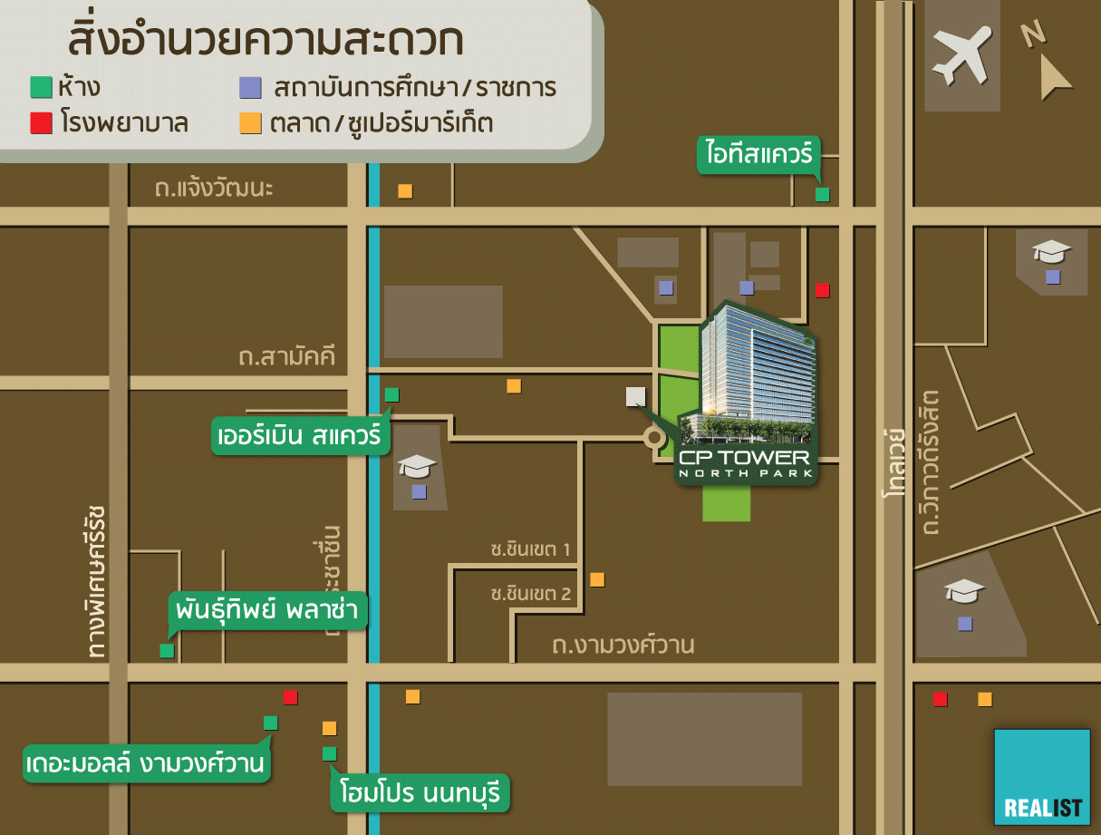หน่วยงานในเครือซีพีที่กำลังหาอาคารเพื่อรองรับการขยายกิจการ ทีมงานซีพีแลนด์ขอแนะนำทางเลือกที่น่าสนใจ นั่นคืออาคารซี.พี.ทาวเวอร์ นอร์ธปาร์ค ที่ตั้งอยู่ ในโซนหลักสี่ ภายในโครงการนอร์ธปาร์คที่มีพื้นที่กว่า 740 ไร่ ริม ถ.วิภาวดีรังสิต ใกล้ศูนย์ราชการแจ้งวัฒนะ และไม่ไกลจากสนามบินดอนเมือง