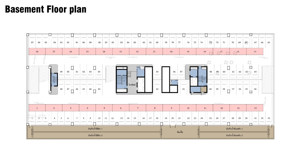 ชั้น 1 และชั้น 5 จะเป็นชั้นหลัก ของพื้นที่ส่วนกลางภายในอาคาร โดยชั้น 1 จะประกอบด้วย Lobby และพื้นที่ให้เช่าสำหรับร้านค้า ส่วนชั้น 5 จะเป็นพื้นที่ส่วนรับประทานอาหาร และ สวน Outdoor สำหรับให้พนักงานมานั่งผ่อนคลายในช่วงเวลาพักได้ และบริเวณห้องน้ำ จะอยู่ตรงกลางของอาคาร แบ่งเป็นห้องน้ำหญิง ห้องน้ำชาย และห้องน้ำสำหรับผู้พิการ ที่มีจำนวนมากพอต่อการใช้งานของพนักงานแต่ละชั้น