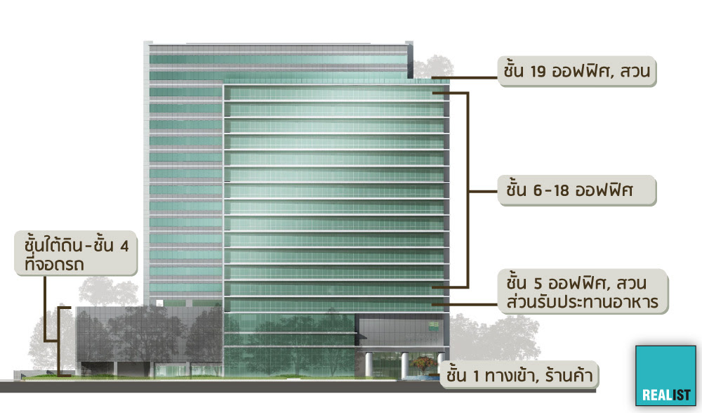 พื้นที่เช่ารวม : 25,120 ตร.ม.เป็นสำนักงาน 24,830 ตร.ม.และ ร้านค้า : 290 ตร.ม. ค่าเช่าพื้นที่สำนักงาน : 550 บ. / ตร.ม. / เดือน