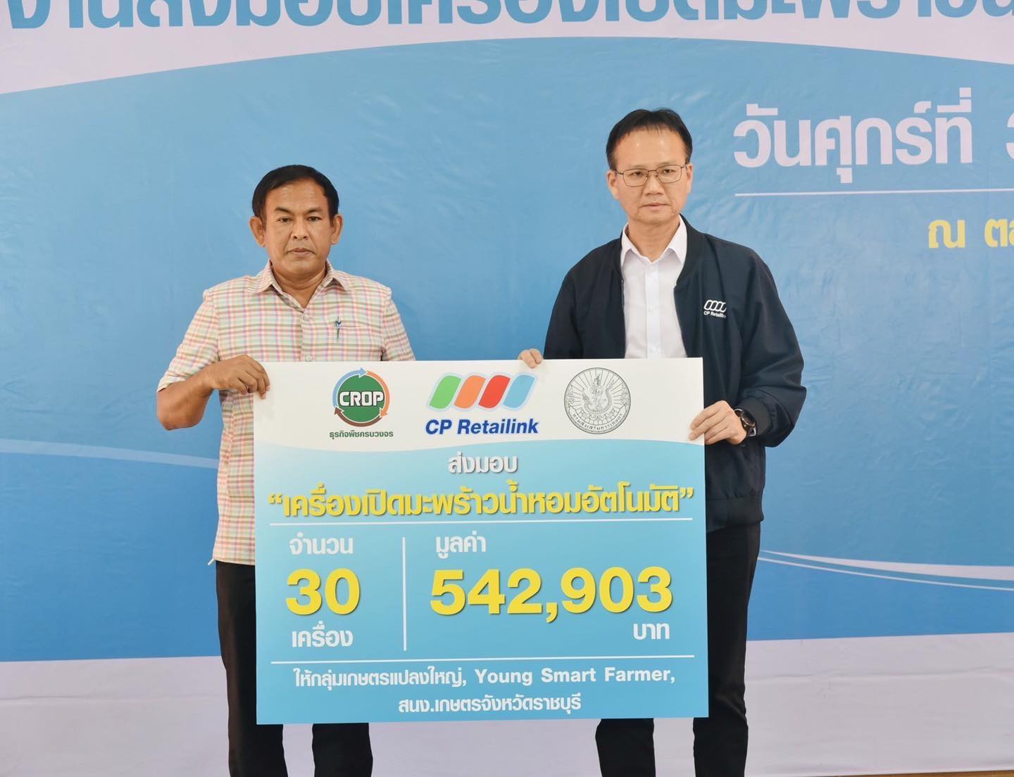 โดยมีคุณสมเกียรติ ปัตยะกร ผู้จัดการทั่วไป บริษัท ซีพี รีเทลลิงค์ จำกัด (หรือ CP Retaillink) และคุณจันทิวา ชาติวิริยะอำนวย รองกรรมการผู้จัดการ บริษัท ซีพี แพลนท์ จำกัด (หรือ CP PLANT) ร่วมส่งมอบเครื่องเปิดมะพร้าวน้ำหอมอัตโนมัติ จำนวน 30 เครื่อง รวมมูลค่า 542,903.05 บาท ให้กับสำนักงานเกษตรจังหวัดราชบุรี กลุ่มเกษตรกรแปลงใหญ่ จำนวน 23 กลุ่ม และเกษตร Young Smart Farmer ในเขตพื้นที่ อ.ดำเนินสะดวก อ.เมือง และ อ.บางแพ จ.ราชบุรี และมีคุณสุพัฒน์ อ่อนคง หัวหน้ากลุ่มยุทธศาสตร์และสารสนเทศ (รักษาราชการแทนเกษตรจังหวัดราชบุรี) เป็นผู้รับมอบ เพื่อเป็นเครื่องมือในการประกอบอาชีพ ทุ่นแรงทุ่นเวลา อีกทั้งยังช่วยเพิ่มมูลค่าและรายได้ให้กับเกษตรกร ภายในงานได้รับเกียรติจากเกษตรอำเภอ โครงการแปลงใหญ่มะพร้าวน้ำหอม จำนวน 5 อำเภอ ในเขตพื้นที่ อ.เมือง อ.โพธาราม อ.บางแพ อ.วัดเพลง และ อ.ดำเนินสะดวก มาร่วมศึกษาดูงาน และยังมีจัดแสดงบูธน้ำมะพร้าว Coco Power และบูธอื่นๆ อีกด้วย