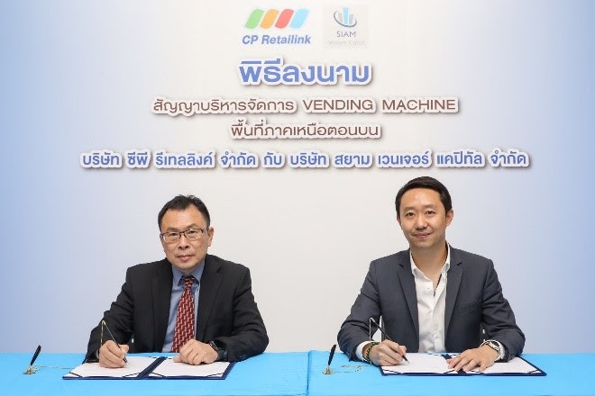 บริษัท ซีพี รีเทลลิงค์ จำกัด จับมือกับ บริษัท สยาม เวนเจอร์ แคปิทัล จำกัด จัดพิธีลงนามสัญญาบริหารจัดการ Vending Machine เครื่องจำหน่ายสินค้าอัตโนมัติ ในพื้นที่ภาคเหนือตอนบน เพื่อเป็นอีกหนึ่งทางเลือกใหม่ในการเลือกซื้อสินค้าของคนในพื้นที่ ณ อาคารโอกาส บริษัท ซีพี รีเทลลิงค์ จำกัด