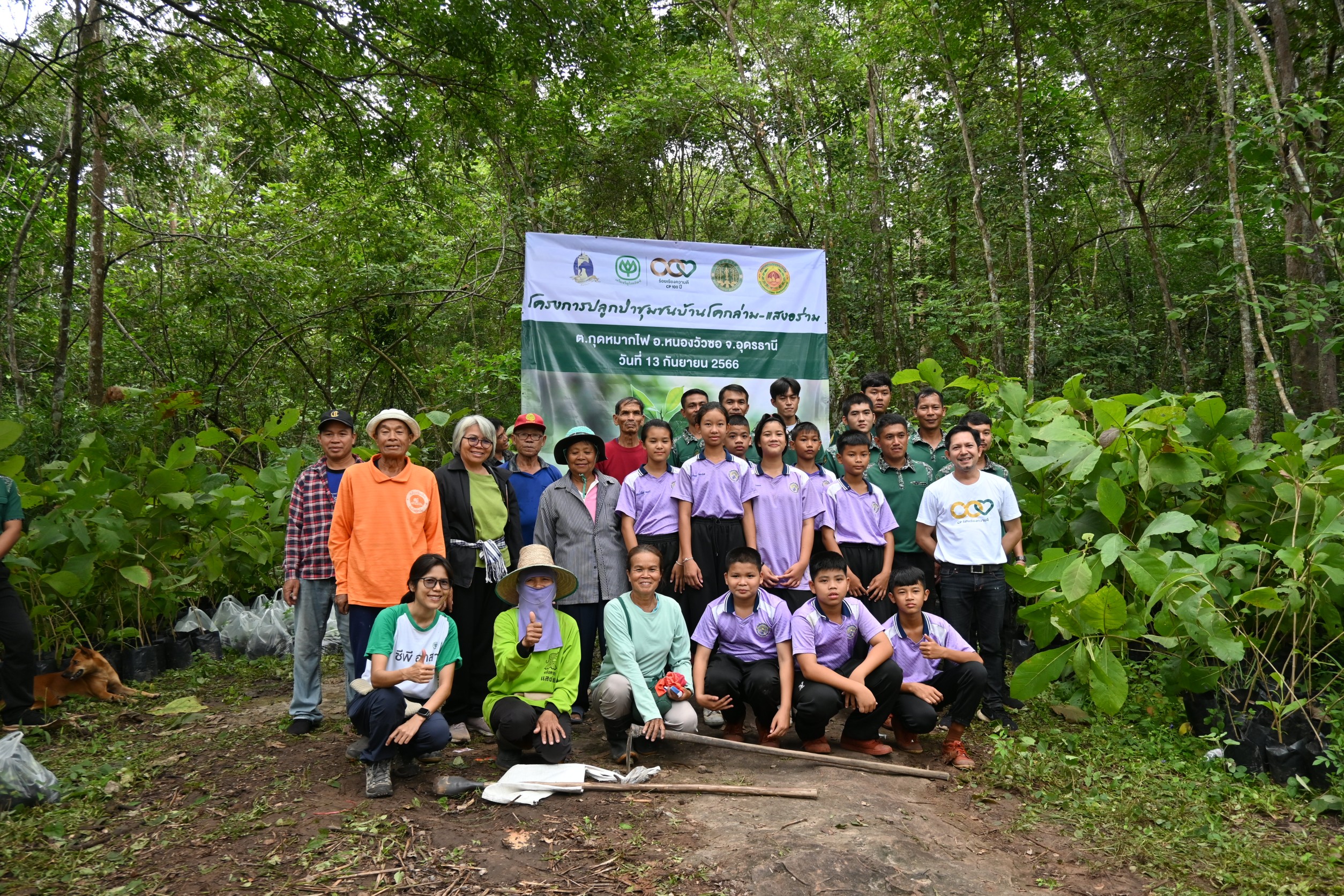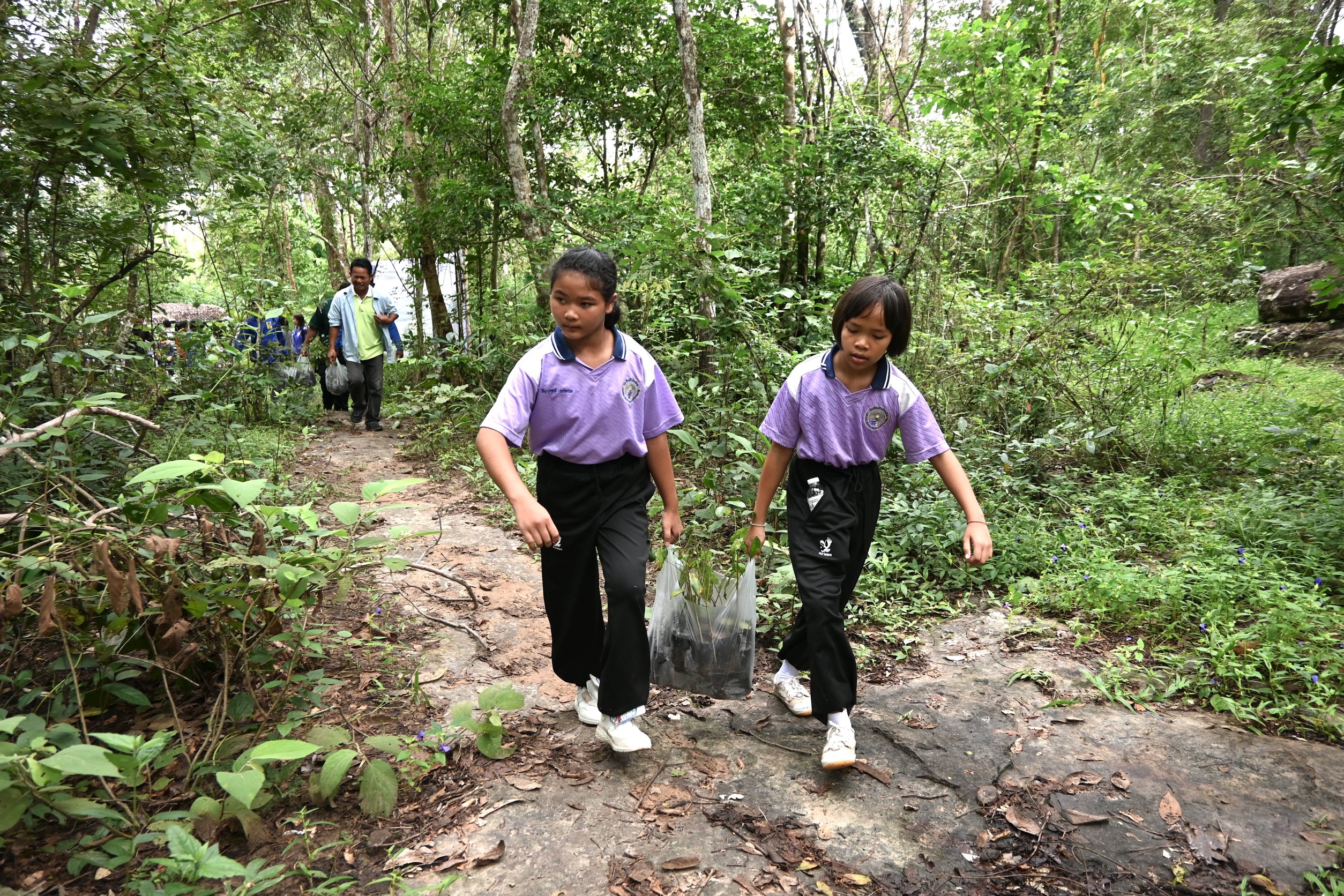โดยกิจกรรมดังกล่าวฯ มีการปลูกไม้ใช้สอยและไม้ยืนต้น อาทิ ต้นมะค่าโม ต้นสัก ต้นตะเคียนทอง และต้นพยุง จำนวนกว่า 4,500 ต้น เสริมป่าชุมชนเดิมที่ส่วนใหญ่เป็นไม้ผล ไม้กิน เพื่อเป็นการฟื้นฟูป่าชุมชนให้มีความอุดมสมบูรณ์ โดยน้อมนำแนวพระราชดำริ “ป่า 3 อย่าง ประโยชน์ 4 อย่าง” ได้แก่ ไม้ใช้สอย ไม้กินได้ และไม้เศรษฐกิจ พร้อมทั้ง ปลูกฝังและสร้างจิตสำนึกการอนุรักษ์ป่าไม้ให้เด็ก เยาวชน และคนในชุมชนเห็นถึงความสำคัญของทรัพยากรธรรมชาติ ผ่านการมีส่วนร่วมในการปลูกต้นไม้สร้างป่าชุมชน