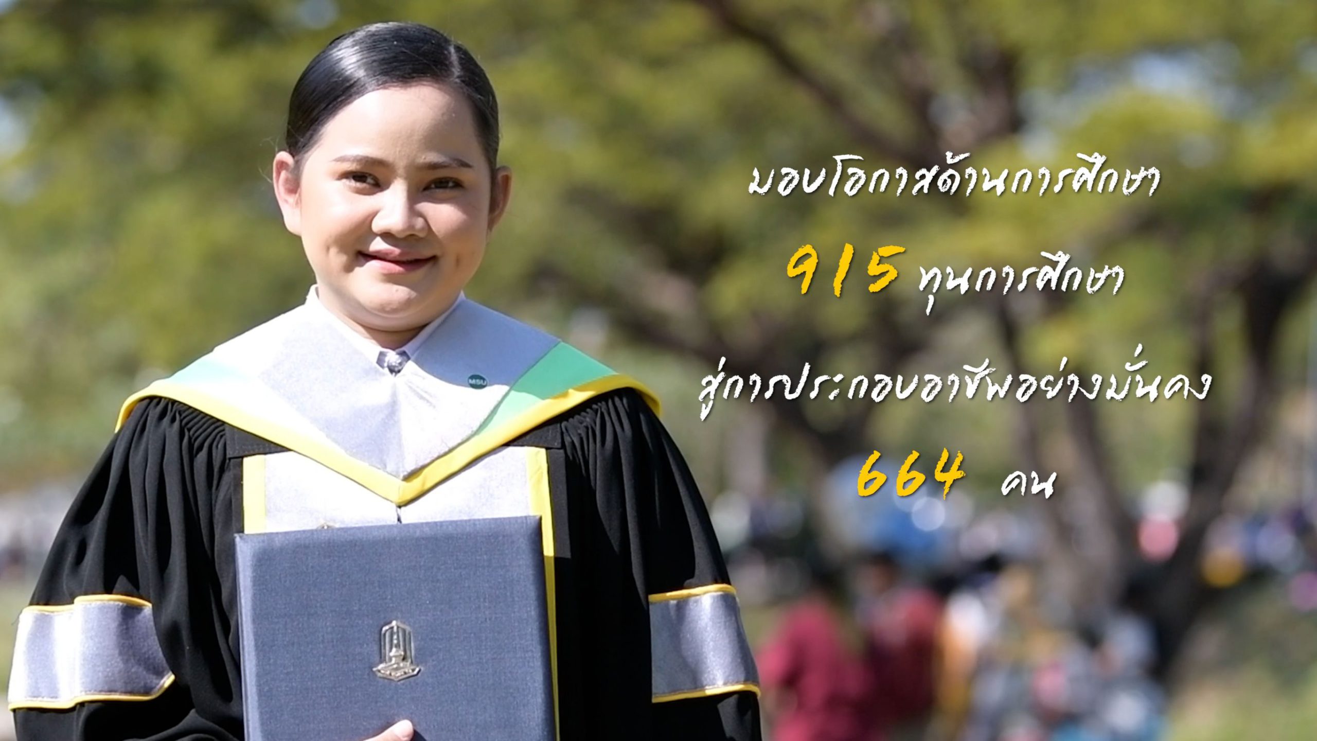 มูลนิธิฯ ได้มอบทุนการศึกษา เพื่อเปิดโอกาสทางการศึกษาลดความเหลื่อมล้ำ ให้กับเด็กและเยาวชนกลุ่มเปราะบาง จำนวน 915 ทุน และได้ส่งเสริมอาชีพ สร้างรายได้ให้แก่เกษตรกรและชาวประมงผู้ด้อยโอกาส จำนวน 2,678 คน