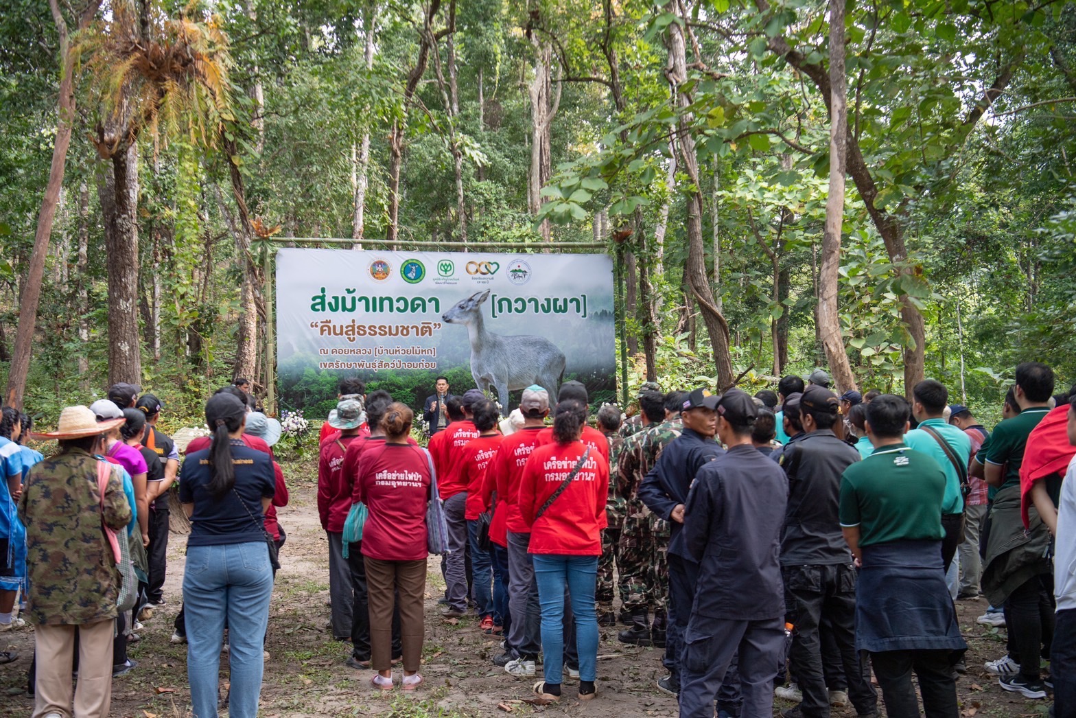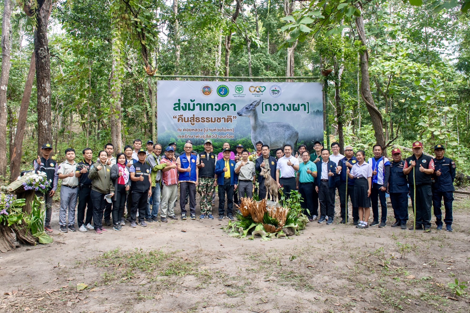 เมื่อเร็ว ๆ นี้ มูลนิธิเจริญโภคภัณฑ์พัฒนาชีวิตชนบท ร่วมกับ สถานีเพาะเลี้ยงสัตว์ป่าอมก๋อย จังหวัดเชียงใหม่ ร่วมกันส่ง “ม้าเทวดา” (กวางผา) สัตว์ป่าสงวนกลับคืนสู่ธรรมชาติ จำนวน 4 ตัว โดยมี คุณทศพล เผื่อนอุดม รองผู้ว่าราชการจังหวัดเชียงใหม่ เป็นประธานในพิธี ร่วมด้วยคุณจอมกิตติ ศิริกุล กรรมการและเลขาธิการมูลนิธิเจริญโภคภัณฑ์พัฒนาชีวิตชนบท คุณกฤตภาส ขันทะธงสกุลดี ผู้อำนวยการส่วนอนุรักษ์สัตว์ป่า สำนักงานบริหารพื้นที่อนุรักษ์ที่ 16 (เชียงใหม่) ว่าที่ร้อยตรี อดิศักดิ์ ดวงจินดา นายอำเภออมก๋อย คุณภาณุเดช เกิดมะลิ ประธานมูลนิธิสืบนาคะเสถียร พร้อมด้วยหน่วยงานภาครัฐในพื้นที่ อาทิ เขตรักษาพันธุ์สัตว์ป่าอมก๋อย เขตห้ามล่าสัตว์ป่านันทบุรี สถานีเพาะเลี้ยงสัตว์ป่าอมก๋อย สถานีควบคุมไฟป่า หน่วยป้องกันและพัฒนาป่าไม้อมก๋อย เกษตรอำเภอ พัฒนาการอำเภอ สถาบันวิจัยและพัฒนาพื้นที่สูง (องค์การมหาชน) องค์การบริหารส่วนตำบลม่อนจอง องค์การบริหารส่วนตำบลแม่ตื่น ชุมชนบ้านห้วยไม้หก โรงเรียนบ้านห้วยไม้หก หน่วยงานภาคประชาสังคม อาทิ มูลนิธิเพื่อการพัฒนาพื้นที่ยั่งยืน (ภาคเหนือ) มูลนิธิไทยรักษ์ป่า และกลุ่มธุรกิจในเครือฯ อาทิ บริษัท เจริญโภคภัณฑ์อาหาร จำกัด (มหาชน) บริษัท เอก-ชัย ดิสทริบิวชั่น ซิสเทม จำกัด (โลตัส) บริษัท ซีพีเอฟ (ประเทศไทย) จำกัด (มหาชน) บริษัท ซีพีเอฟ โกลบอล ฟู้ด โซลูชั่น จำกัด (มหาชน) และ บริษัท ซีที เฟรช จำกัด ร่วมกันปล่อยกวางผาเพื่อเพิ่มจำนวนประชากรกวางผาและอนุรักษ์สัตว์ป่าสงวนของไทยไม่ให้สูญพันธุ์ พร้อมทั้งปลูกฝังเยาวชน และประชาชนบนพื้นที่สูงให้อยู่ร่วมกับสัตว์ป่าได้อย่างสมดุลและยั่งยืน ณ จุดปล่อยกวางผาบ้านห้วยไม้หก ตำบลม่อนจอง อำเภออมก๋อย จังหวัดเชียงใหม่
