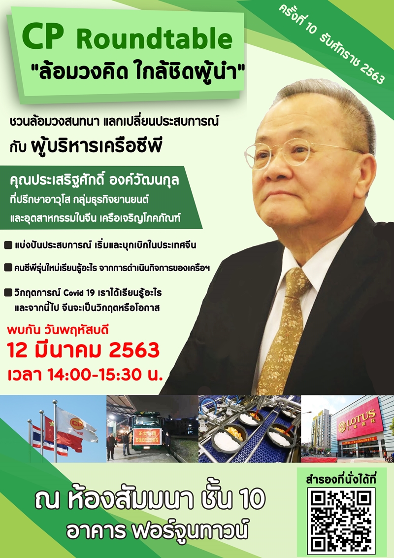 ชวนพนักงานหนุ่มสาวเครือเจริญโภคภัณฑ์ร่วมล้อมวงสนทนา ฟังการถ่ายทอดประสบการณ์ บทเรียน การทำงาน พร้อมถาม-ตอบกับผู้บริหารเครือฯ ซีพี