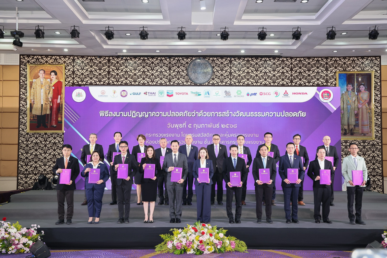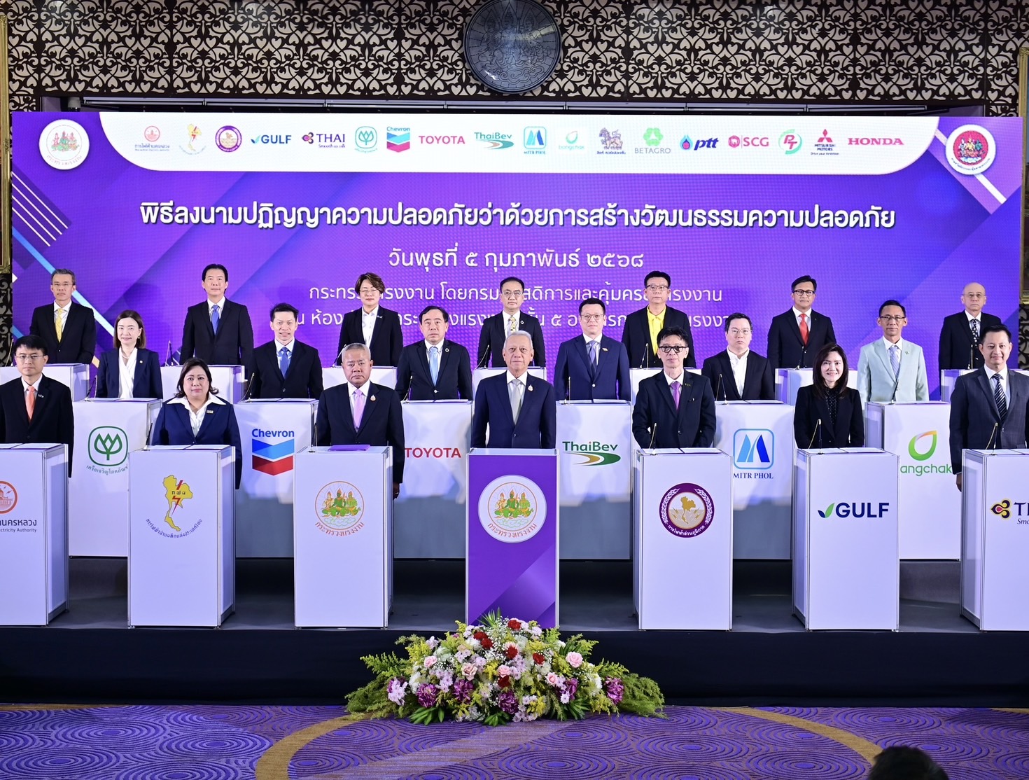 เมื่อวันที่ 5 กุมภาพันธ์ 2568 – เครือเจริญโภคภัณฑ์ (ซีพี) โดย คุณพิมลรัตน์ รีพัฒนาวิจิตรกุล ประธานผู้บริหารทรัพยากรบุคคล ร่วมลงนามใน “ปฏิญญาความปลอดภัย ว่าด้วยการสร้างวัฒนธรรมความปลอดภัย” เพื่อขับเคลื่อนแคมเปญ “Safety Culture Together” ซึ่งจัดขึ้นโดยกระทรวงแรงงาน ผ่านกรมสวัสดิการและคุ้มครองแรงงาน เพื่อยกระดับมาตรฐานความปลอดภัยในการทำงาน และส่งเสริมวัฒนธรรมความปลอดภัยในภาคอุตสาหกรรมไทย โดยมีคุณพิพัฒน์ รัชกิจประการ รัฐมนตรีว่าการกระทรวงแรงงานเป็นประธาน พร้อมด้วยผู้บริหารเครือซีพี คุณวรวิทย์ วรุตบางกูร หัวหน้าคณะผู้บริหารด้านกำกับการปฏิบัติตามกฎเกณฑ์ เข้าร่วมงาน โดยมีการร่วมมือกับ 17 องค์กรชั้นนำ อาทิ การไฟฟ้านครหลวง การไฟฟ้าฝ่ายผลิต การไฟฟ้าส่วนภูมิภาค การบินไทย เครือเจริญโภคภัณฑ์ โตโยต้า ไทยเบฟ มิตรผล บางจาก และ ปตท. โดยมีเป้าหมายในการลดอัตราการประสบอันตรายจากการทำงานและอุบัติเหตุร้ายแรงให้อยู่ที่ไม่เกิน 1 ต่อ 1,000 คน และลดอัตราการเสียชีวิตให้ไม่เกิน 3 ต่อ 100,000 คน ภายในปี 2573 ณ ห้องประชุมกระทรวงแรงงาน ชั้น 5