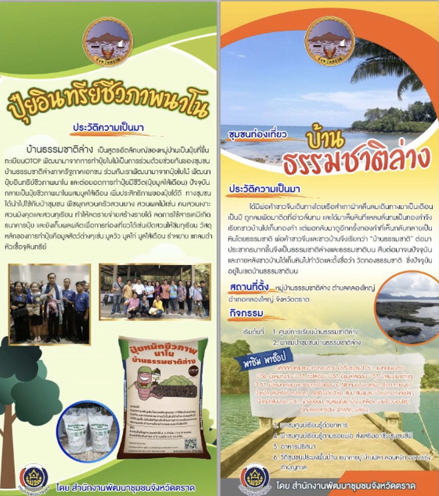ต่อมา ปี2560 มีจำนวนผู้เข้าร่วมโครงการมากขึ้น ความต้องการของปุ๋ยเพิ่มขึ้น ทางหน่วยงานภาครัฐ ชุมชน โรงเรียน ให้ความสนใจเข้ามาศึกษาแลกเปลี่ยนเรียนรู้ และได้ยกระดับเป็นหมู่บ้านเศรษฐกิจพอเพียงเพื่อการท่องเที่ยว ปี2561 จึงต่อยอดผลผลิตจากปุ๋ยนาโนมาจัดโมเดลการท่องเที่ยวเชิงนิเวศน์โดยชุมชนบ้านธรรมชาติล่างโมเดล และในปี2562 จึงมุ่งสู่การเป็นแหล่งท่องเที่ยวแหล่งใหม่ของจังหวัดตราด โดยมีกิจกรรมที่น่าสนใจให้นักท่องเที่ยวๆได้ทั้งปีสร้างสรรค์โดยชุมชน เป็นแหล่งท่องเที่ยวเชิงนิเวศน์และวัฒนธรรม และเกิดกลุ่มวิสาหกิจชุมชนมีการผลิตปุ๋ยนาโน