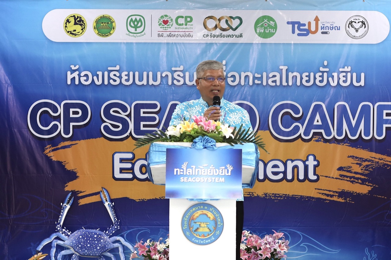 คุณชูชีพ ธรรมเพชร รองผู้ว่าราชการจังหวัดปัตตานี กล่าวว่า ทรัพยากรทางทะเลในปัจจุบันกำลังเผชิญกับความเสื่อมโทรมจากกิจกรรมของมนุษย์ เช่น การทำประมงเกินขนาด มลพิษทางทะเล และการเปลี่ยนแปลงสภาพภูมิอากาศ ส่งผลให้ความหลากหลายทางชีวภาพลดลงและระบบนิเวศเสียสมดุล จึงมีความพยายามในการอนุรักษ์และฟื้นฟูทรัพยากรทางทะเลอย่างต่อเนื่อง ในวันนี้ รู้สึกดีใจเป็นอย่างยิ่ง ที่ทุกภาคส่วน รวมถึงเครือเจริญโภคภัณฑ์ให้ความสำคัญต่อการอนุรักษ์ทรัพยากรทางทะเล พร้อมผนึกกำลังสร้างสรรค์สิ่งที่มีคุณค่า สร้างผู้นำเยาวชนที่จะก้าวไปเป็นต้นแบบผู้นำที่ดีในอนาคต ถือเป็นการสร้างพลังขับเคลื่อนเชิงพื้นที่อย่างแท้จริง และขอเป็นกำลังใจให้เยาวชนเก็บเกี่ยวความรู้ ประสบการณ์ เพื่อนำไปต่อยอดโอกาสให้มากที่สุด เกิดการตระหนักรู้ถึงการรักษาทรัพยากรสิ่งแวดล้อมอย่างยั่งยืน