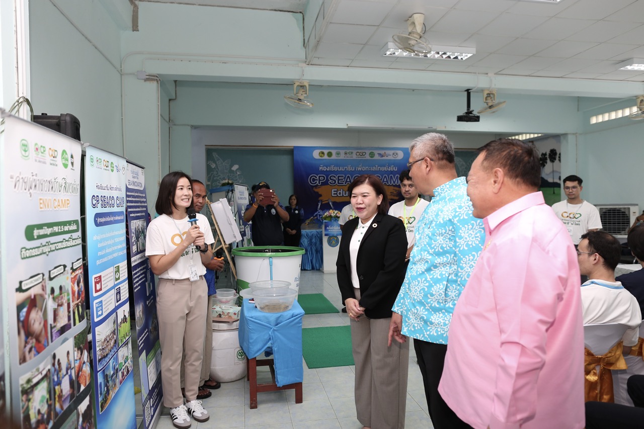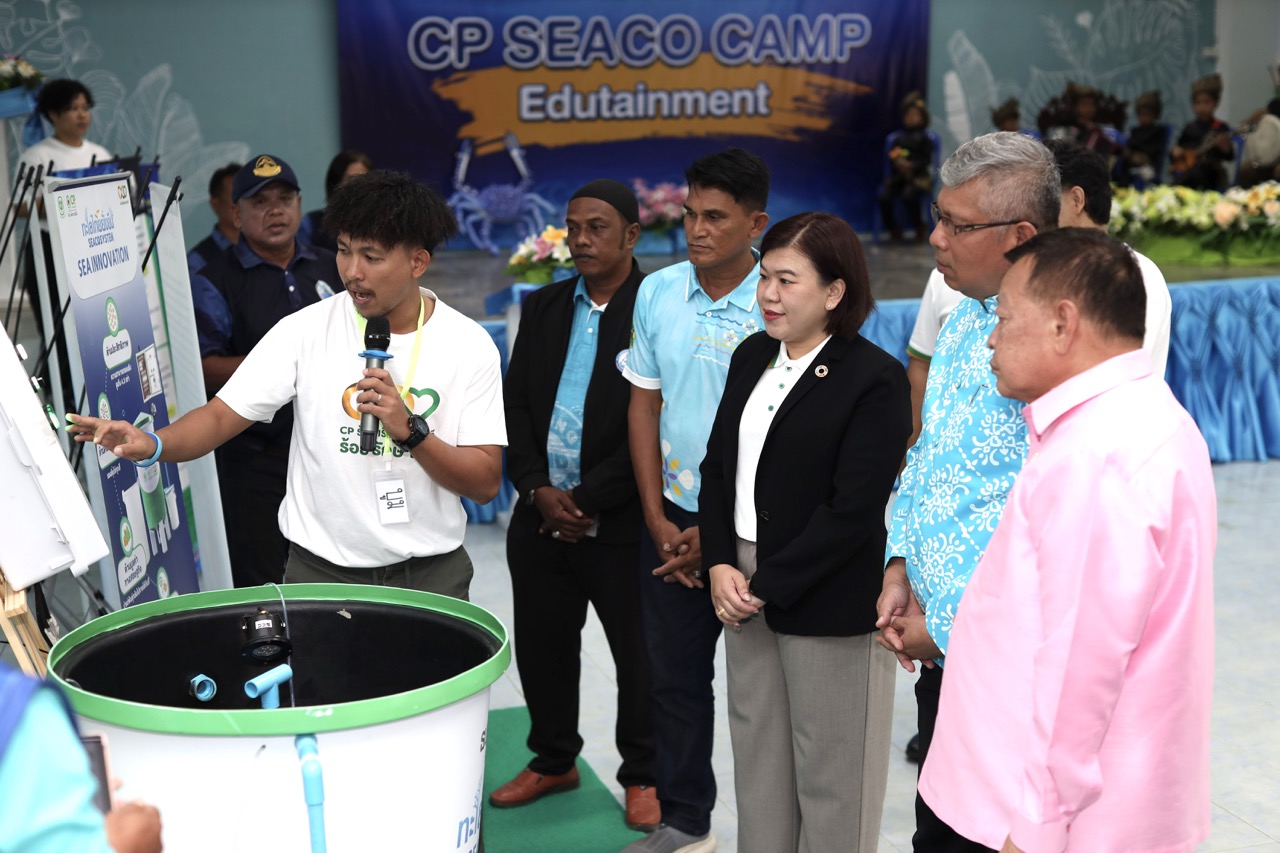 ทางด้าน คุณพิไลลักษณ์ พิชัยวัตต์ ผู้ช่วยกรรมการผู้จัดการด้านพัฒนาความยั่งยืนภาครัฐและกิจการสัมพันธ์ เครือเจริญโภคภัณฑ์ เปิดเผยว่า โครงการ “CP SEACO CAMP: ห้องเรียนมารีน เพื่อทะเลไทยยั่งยืน” เป็นหนึ่งในแผนงานภายใต้ “SEACOSYSTEM เพื่อทะเลไทยยั่งยืน” โดยมุ่งเน้นไปที่การปลูกฝังจิตสำนึกรักษ์ทะเลให้กับเยาวชน ผ่านกิจกรรมการเรียนรู้แบบ Mobile Learning ที่สนุกและสร้างสรรค์ภายใต้แนวคิด “Edutainment” ที่ผสานความรู้และความบันเทิงเข้าด้วยกันอย่างลงตัว เพื่อให้เยาวชนได้ตระหนักถึงคุณค่าและความสำคัญของการอนุรักษ์ทรัพยากรทางทะเล และพร้อมที่จะเติบโตไปเป็นผู้ใหญ่ที่รักและหวงแหนทรัพยากรทางทะเลในบ้านเกิดของตนเอง รวมถึงการใช้ทรัพยากรอย่างรับผิดชอบ เข้าใจแนวทางการทำประมงอย่างยั่งยืน มีความรู้เกี่ยวกับนวัตกรรมธนาคารสัตว์น้ำ ชนิดสัตว์น้ำ โดยโครงการดังกล่าวฯ เป็นโมเดลต่อยอดจากโครงการค่ายผู้นำเยาวชนรักษ์สิ่งแวดล้อม ENVI CAMP ซึ่งประสบความสำเร็จมาแล้วในภาคเหนือ โดยบูรณาการองค์ความรู้และกิจกรรมต่าง ๆ ร่วมกับหน่วยงานภาครัฐ ภาคการศึกษา ภาคเอกชน ปราชญ์ชุมชน และในโอกาสอันดีนี้ ยังส่งมอบ “นวัตกรรมธนาคารสัตว์น้ำ” แห่งแรก ใน จ.ปัตตานี สนับสนุนโดยเครือซีพี เพื่อส่งต่อให้ชมรมอนุรักษ์และฟื้นฟูทรัพยากรแม่น้ำปัตตานี เพื่อการบริหารจัดการทรัพยากรสัตว์น้ำอย่างยั่งยืน