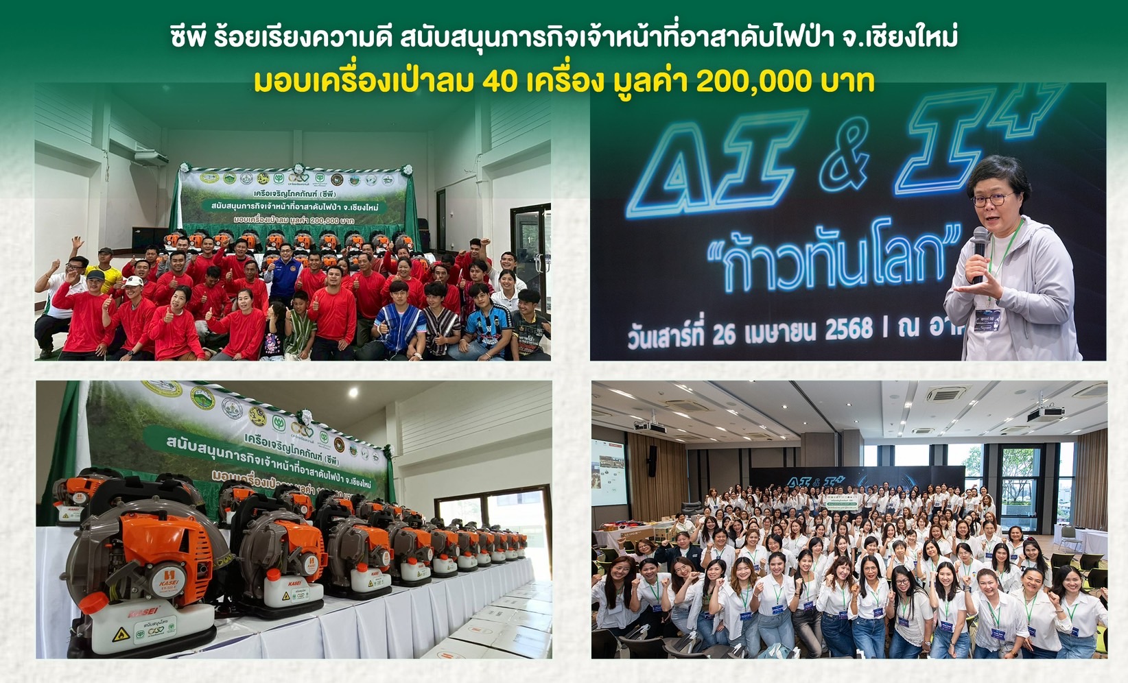 26 เมษายน 2568 – บรรยากาศแห่งความสุขและการส่งต่อพลังใจเกิดขึ้นอีกครั้งใน งานสังสรรค์ประจำปี ชมรมเลขานุการเครือเจริญโภคภัณฑ์ ครั้งที่ 32 ภายใต้ธีม “AI & I PLUS: ก้าวทันโลก” เมื่อ พนักงานเครือซีพี นำโดย คุณสุภาวดี ผลพิรุฬห์ รองกรรมการผู้จัดการใหญ่อาวุโส เครือเจริญโภคภัณฑ์ และประธานชมรมเลขานุการ พร้อมด้วยสมาชิกจากหลากหลายสายธุรกิจรวมกว่า 125 คน ได้รวมพลังน้ำใจ ร่วมบริจาคเงินเพื่อจัดซื้อ เครื่องเป่าลมดับไฟป่า จำนวน 40 เครื่อง มูลค่า 200,000 บาท เพื่อสนับสนุนภารกิจของเจ้าหน้าที่อาสาสมัครดับไฟป่าใน อ.อมก๋อย จ.เชียงใหม่