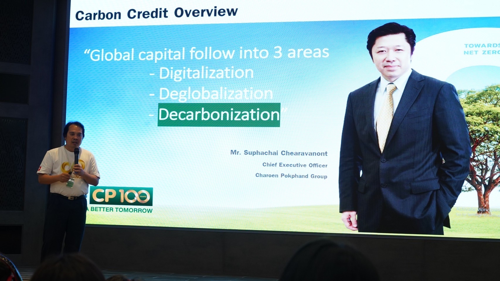 โดยคุณวราห์ โรจน์ศิริทรัพย์ ประธานคณะผู้บริหารฝ่ายปฎิบัติการประเทศเวียดนามและฟิลิปปินส์ ได้จัดให้มีการบรรยายดังกล่าวขึ้น มีวัตถุประสงค์เพื่อสร้างความรู้ความเข้าใจที่ถูกต้อง ในเรื่องคาร์บอนเครดิต ให้เข้าใจถึงการเพิ่มการกักเก็บและลดการปลดปล่อย คาร์บอน ทั้งนี้เพื่อสอดรับกับนโยบายของเครือเจริญโภคภัณฑ์ ที่มีเป้าหมายในการที่ต้องก้าวสู่การเป็นองค์กรที่เป็นกลางทางคาร์บอน(Carbon neutral)ในปี 2030