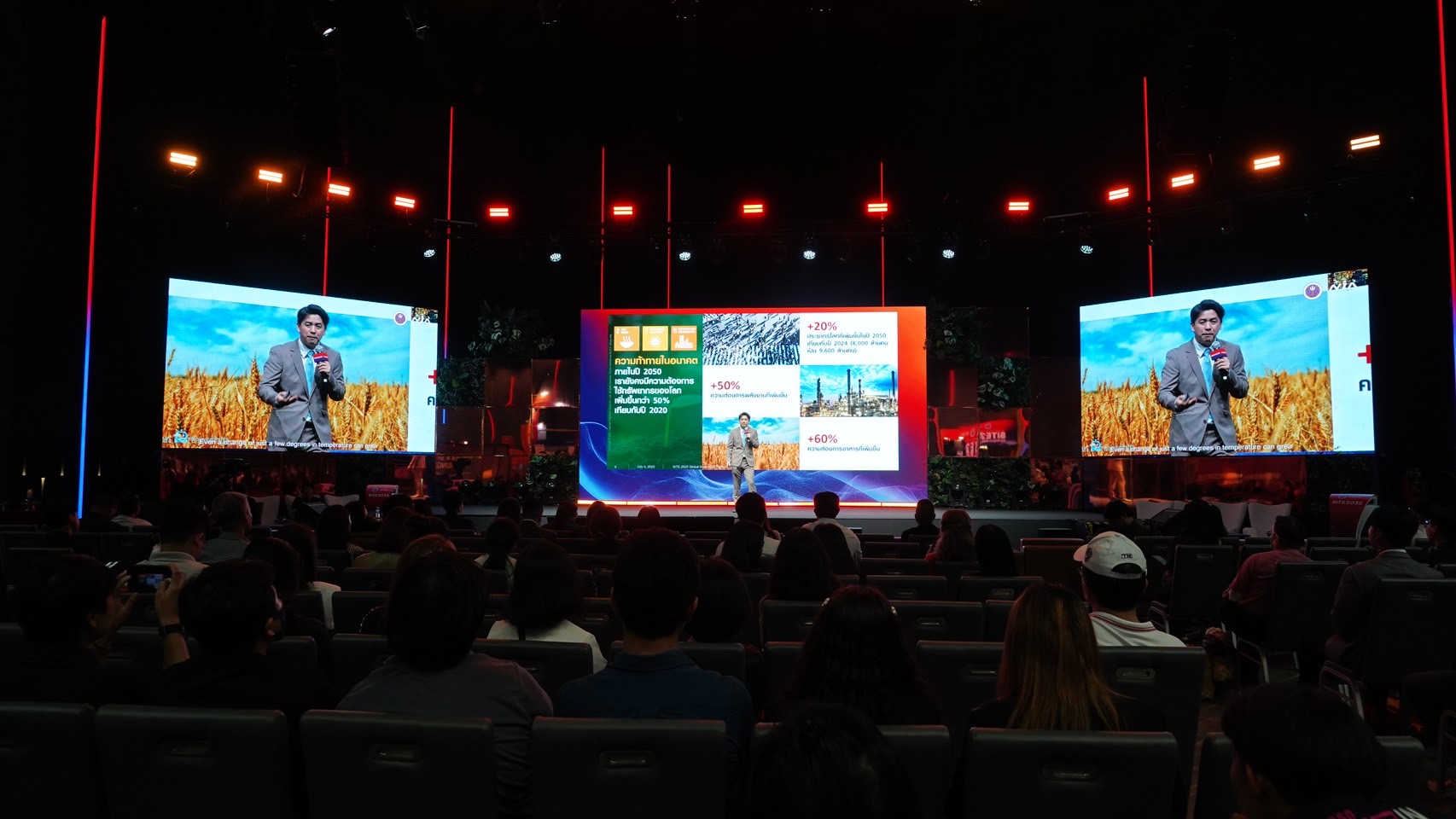 ดร.ธีระพล ถนอมศักดิ์ยุทธ ประธานคณะผู้บริหารด้านความยั่งยืนองค์กรและการพัฒนากลยุทธ์ เครือเจริญโภคภัณฑ์ เปิดเวทีด้วยการฉายภาพปัญหาเร่งด่วนของโลกในปัจจุบัน ทั้งความเหลื่อมล้ำที่ขยายตัวอย่างต่อเนื่อง ภาวะโลกร้อน และสังคมสูงวัย ซึ่งสะท้อนถึงความท้าทายในการมุ่งสู่เป้าหมายด้านความยั่งยืน โดยเฉพาะการเข้าถึงอาหาร การศึกษา ระบบการแพทย์ และแหล่งทุน โดยย้ำว่า “การบรรลุเป้า SDGs ภายในปี 2030 อาจไม่สำเร็จ หากไม่มี Game Changer อย่างนวัตกรรมและ AI” พร้อมยกตัวอย่างกรณีของประเทศไทยแม้ติดอันดับเรื่องความยั่งยืน อันดับที่ 43 ของโลกและเป็นที่ 1 ในอาเซียน แต่สภาพการณ์ของไทยยังเผชิญปัญหาสำคัญ เช่น ผลผลิตทางการเกษตรที่ต่ำ การเข้าถึงบริการทางการแพทย์ที่ไม่ทั่วถึง และข้อจำกัดด้านแหล่งทุน ซึ่งทุกภาคส่วนต้องร่วมกันแก้ไขโดยใช้นวัตกรรมและเทคโนโลยีเป็นตัวขับเคลื่อน