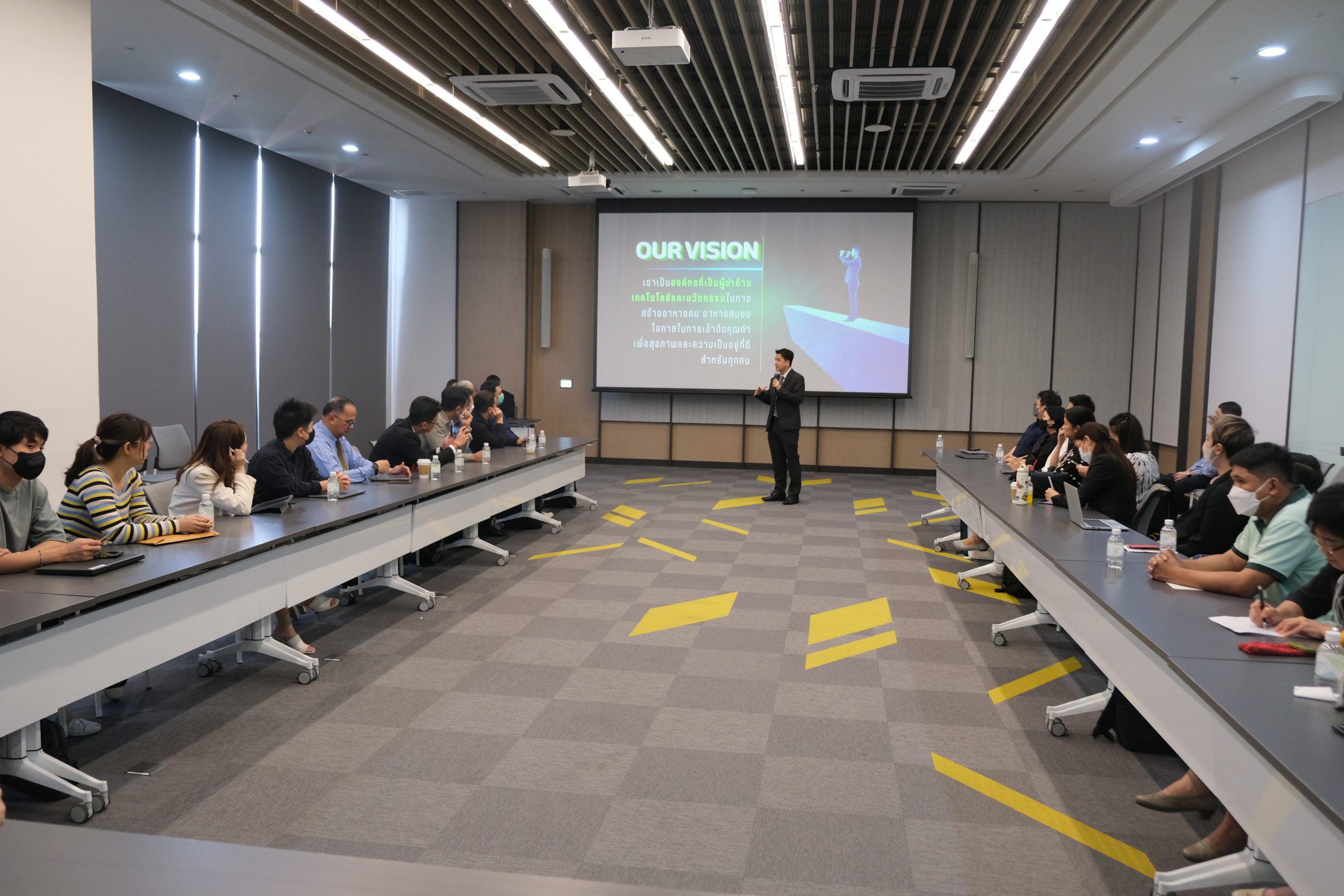 เริ่มด้วย ดร.ธีระพล ถนอมศักดิ์ยุทธ ประธานคณะผู้บริหาร ยุทธศาสตร์ข้อมูลและการสื่อสาร เครือเจริญโภคภัณฑ์ กล่าวต้อนรับด้วยบรรยากาศที่เป็นกันเอง พร้อมฉายภาพกลยุทธ์ และทิศทางด้านการสื่อสารของเครือฯ