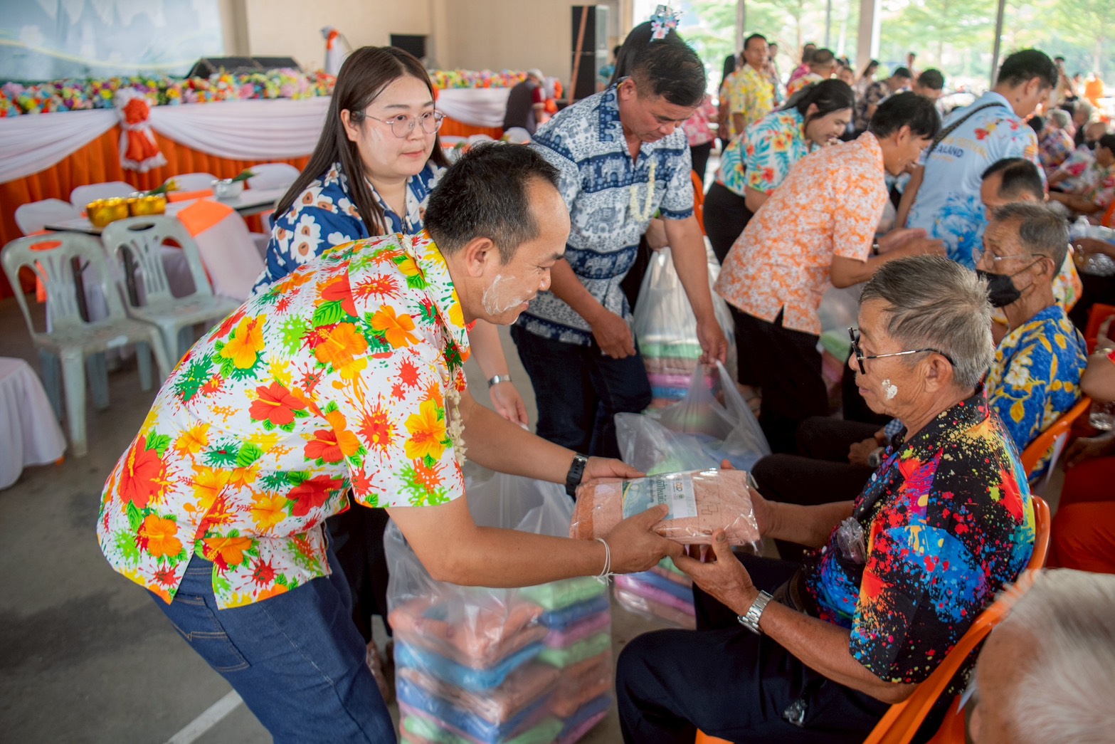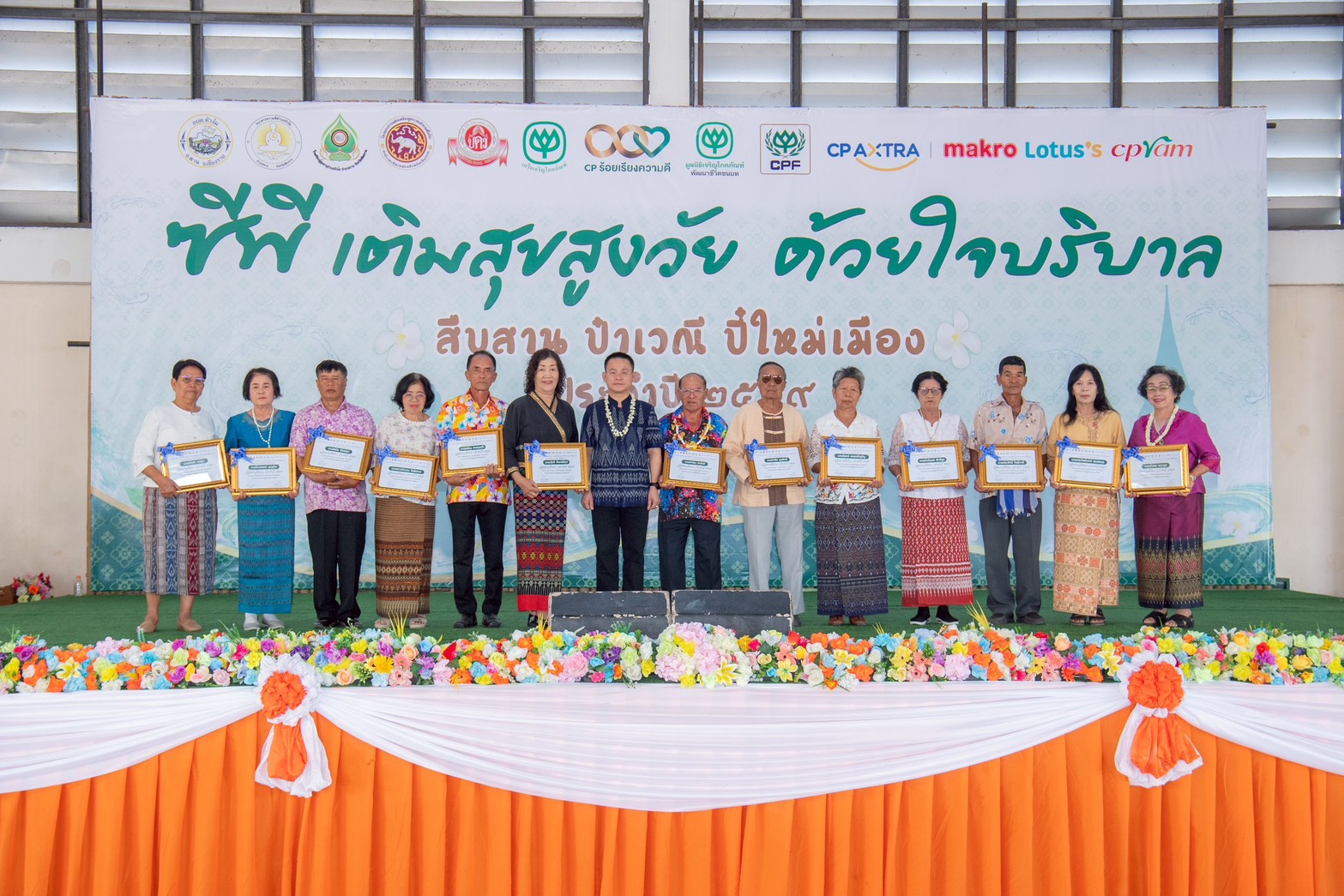 เนื่องในโอกาส “วันผู้สูงอายุแห่งชาติ” มูลนิธิเจริญโภคภัณฑ์พัฒนาชีวิตชนบท (ซีพี) ได้รับเกียรติจากนายอุดม ปกป้องบวรกุล นายอำเภอพาน ร่วมเป็นประธานในพิธี พร้อมด้วย คุณวินัย เครื่องไชย นายกองค์การบริหารส่วนตำบลหัวง้ม คุณกฤตยรัฐ ปารมี ผู้ช่วยเลขาธิการมูลนิธิเจริญโภคภัณฑ์พัฒนาชีวิตชนบท และผู้แทนจากกลุ่มธุรกิจในเครือซีพี ได้แก่ บมจ.เจริญโภคภัณฑ์อาหาร (CPF), บมจ.ซีพี แอ็กซ์ตร้า (CP AXTRA) แม็คโคร -โลตัส , บจก. ซีพีแรม (CPRAM) และชุมชนกว่า 500 คน เพื่อยกย่องและกตัญญูต่อผู้สูงอายุ ให้มีความรู้พื้นฐานในการดูแลสุขภาพอย่างเหมาะสมสามารถดำรงชีวิตมีสุขภาวะที่ดีเพื่อส่งเสริมและสนับสนุนคุณภาพชีวิตของผู้สูงอายุในชุมชน รวมถึงร่วมสืบสานและอนุรักษ์ประเพณีสงกรานต์อันเป็นเอกลักษณ์ของชาติ โดยมีกิจกรรมที่มุ่งเน้นการมอบความสุขและเสริมสร้างคุณภาพชีวิตที่ดีแก่ผู้สูงอายุ ณ องค์การบริหารส่วนตำบลหัวง้ม อ.พาน จ.เชียงราย